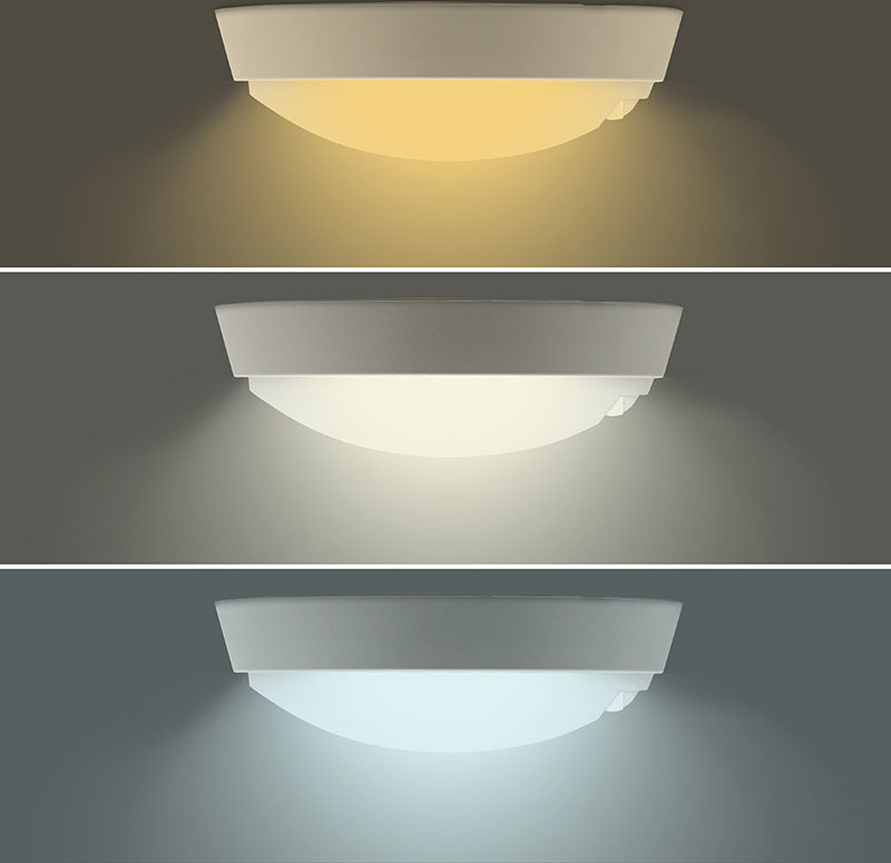 - světlo s pohybovým sensorem, speciálním LED zdrojem s přepínačem, který umožňuje nastavení teploty světla (CCT / chromatičnosti) 3000K, 4000K nebo 6500K. Současně lze volit příkon mezi 15/18/20W Součástí balení je černý i bílý kryt světla, který lze dle potřeby vyměnit.