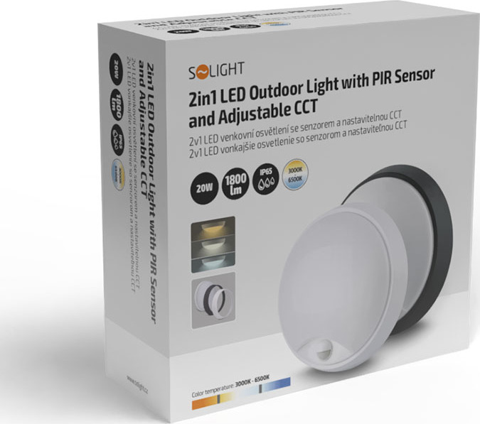 Solight LED venkovní osvětlení se senzorem, 3 CCT, 15/18/20W, 1800lm, 22cm, 2v1 - bílý a černý kryt