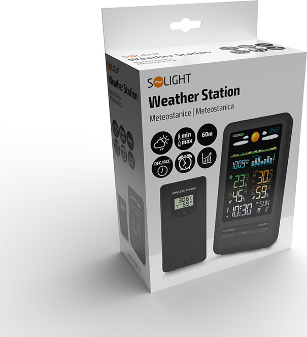 Solight meteostanice, barevný LCD, vnitřní/venkovní teplota a vlhkost, tlak, RCC, černá