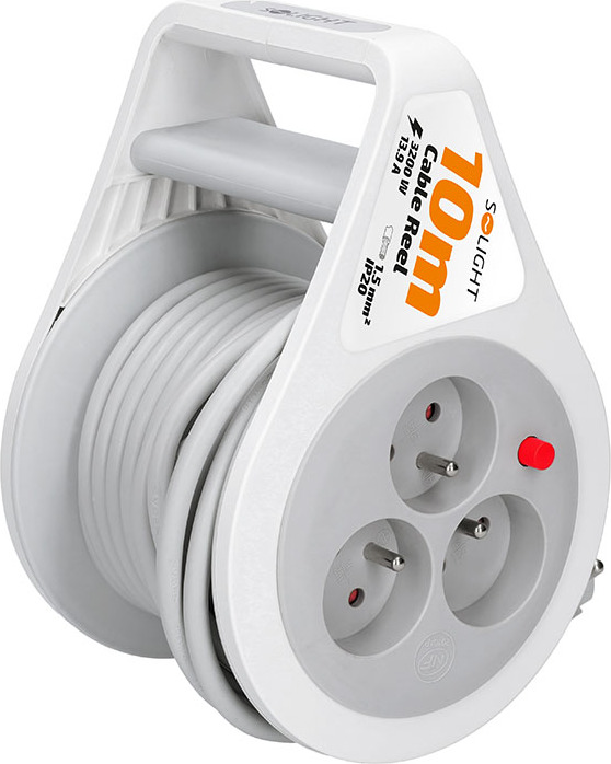 Solight prodlužovací přívod na bubnu 10m, 3 zásuvky, šedý kabel, 3x 1,5mm2