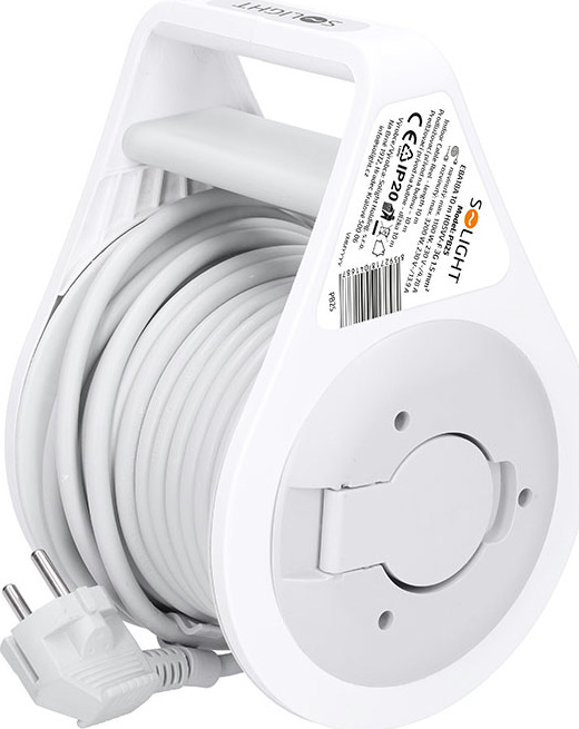 Kabel s vodiči 3×1,5 mm2 je uložen v pevném plastovém těle s kvalitním navíjecím mechanismem. Velká a výklopná navíjecí klika zajišťuje pohodlnou manipulaci a běžně skrytá uvnitř bubnu dotváří elegantní vzhled. Buben je určen pro vnitřní použití a splňuje požadavky běžného provozu.