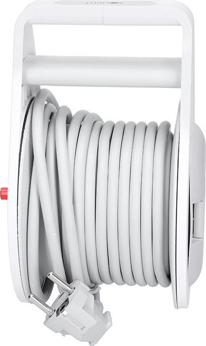 Přestože je buben malý a skladný, zvládne stejnou zátěž jako větší modely. Tři zásuvky s dětskými pojistkami jsou navíc chráněny i tepelnou pojistkou, která odpojí napájení při přetížení nebo při plné zátěži bez úplného odvinutí kabelu. 10 metrů délky poskytuje dostatek dosahu pro běžné i náročnější použití v interiéru.