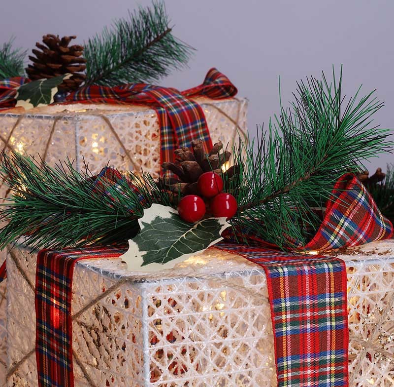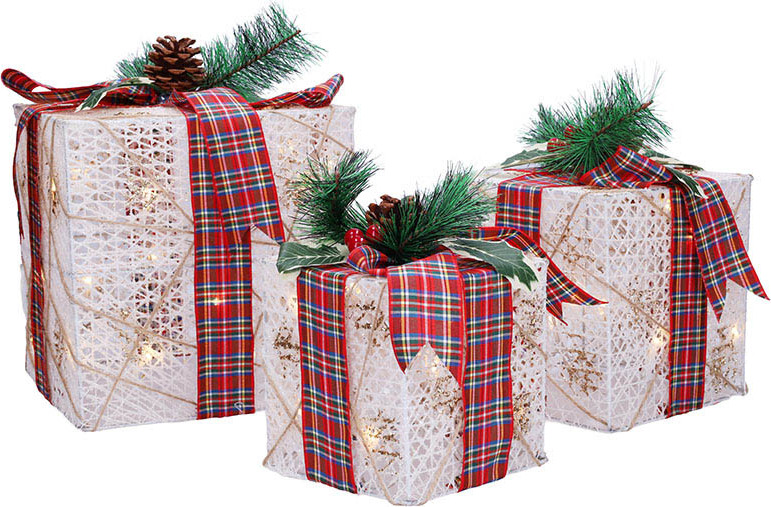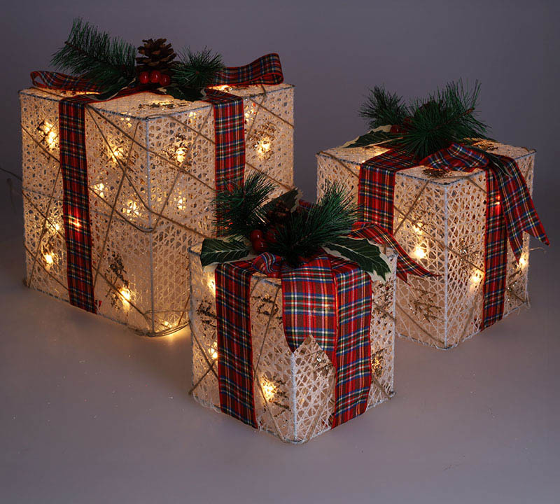 Rozjasněte svůj domov i zahradu kouzelnou sadou tří dekorativních vánočních dárků s LED osvětlením. Tyto barevné svítící dekorace vytvoří útulnou sváteční atmosféru a stanou se nepřehlédnutelným prvkem vaší vánoční výzdoby.