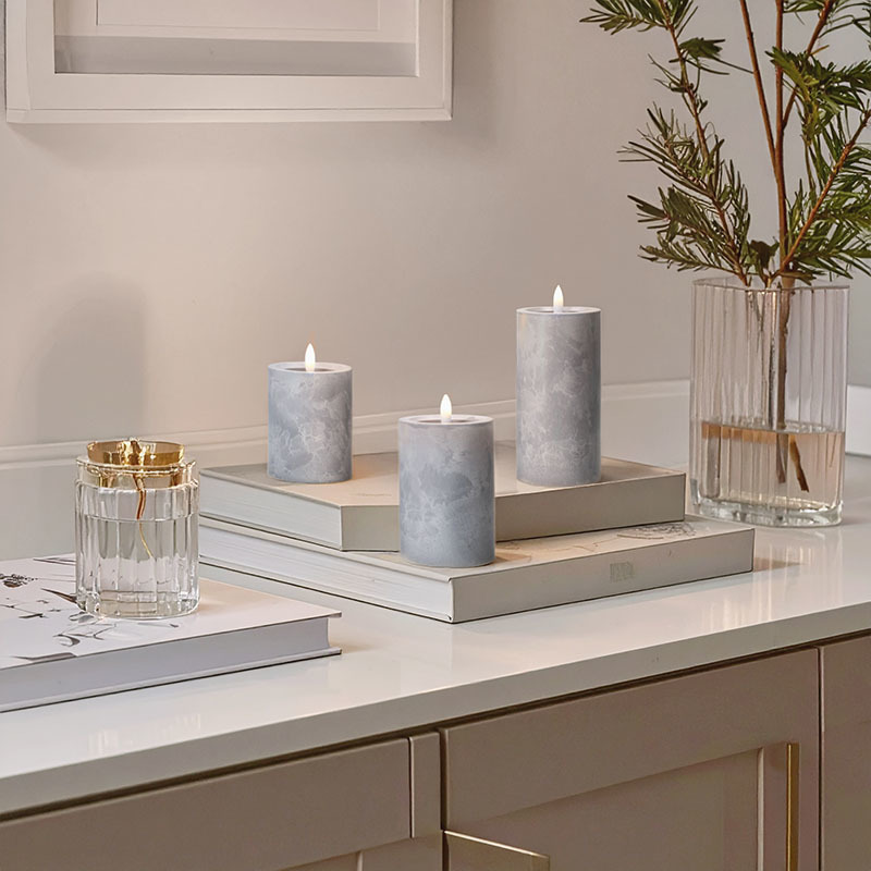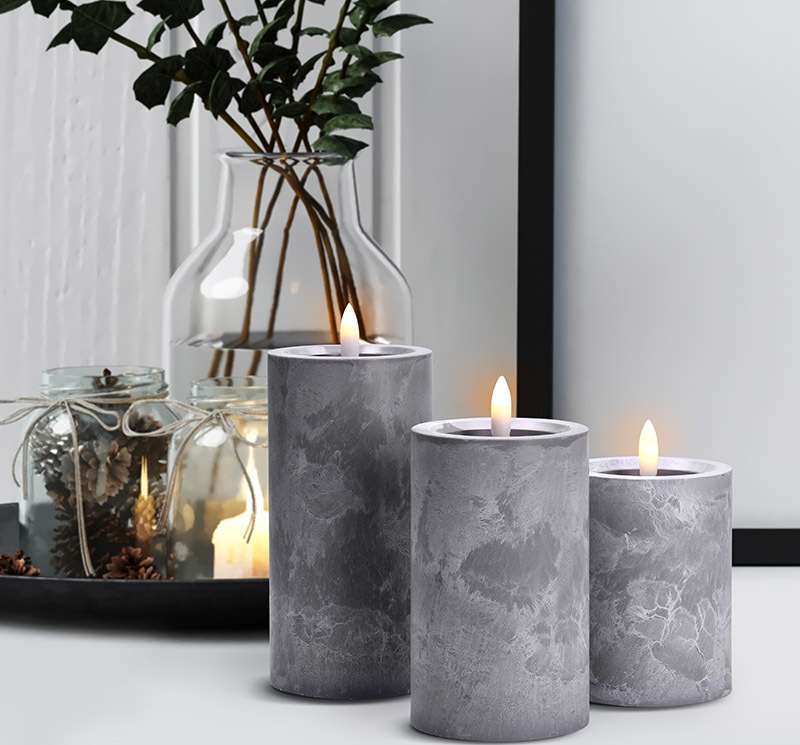 - sada LED svíček s přirozeně blikajícím plamenem a dekorem šedého mramoru