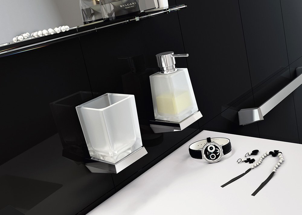 Luxusní design doplňuje mimořádná kvalita zpracování. Doplňky jsou vyrobené z mosazi a ručně foukaného skla. Dostupné ve dvou povrchových úpravách – chrom a zlato, které obsahuje 24 kt zlato.
