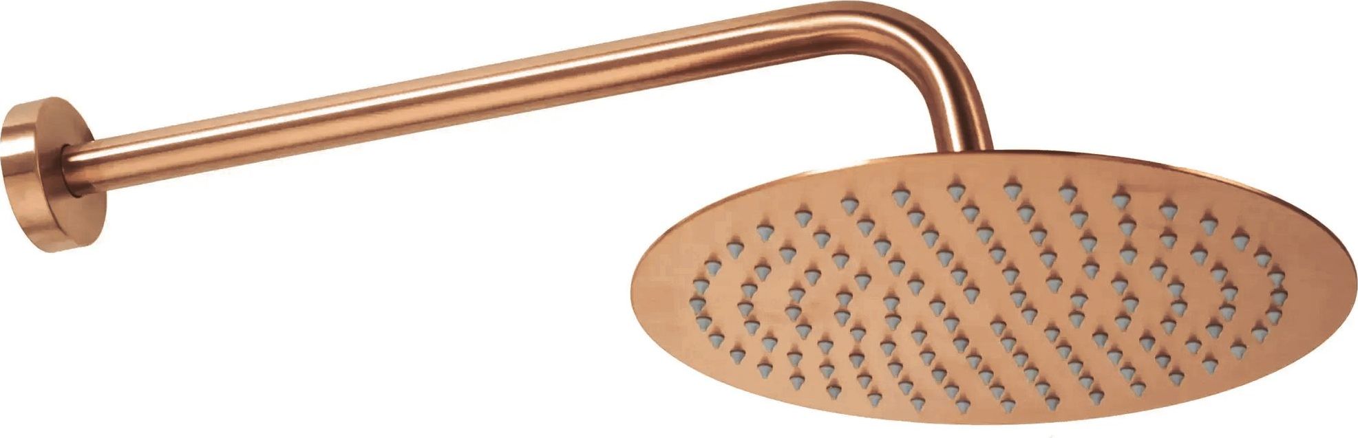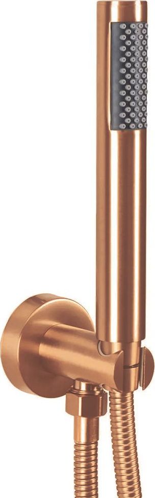 Moderní podomítková souprava ve měděném broušeném provedení se skládá z baterie s mosaznou podomítkovou konstrukcí s krycí deskou vyrobenou z nerezové oceli, horní sprchové hlavice z plastu, vývodu s držákem ruční sprchy z mosazi, opletené 150cm hadicí na ruční sprchy z plastu.