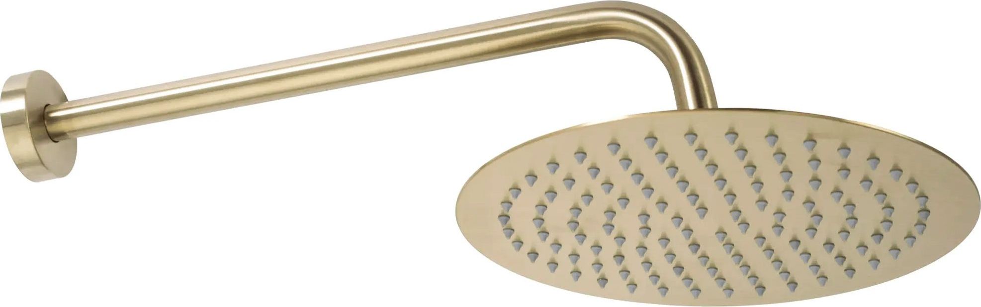 Moderní podomítková souprava ve zlatém broušeném provedení se skládá z baterie s mosaznou podomítkovou konstrukcí s krycí deskou vyrobenou z nerezové oceli, horní sprchové hlavice z plastu, vývodu s držákem ruční sprchy z mosazi, opletené 150cm hadicí na ruční sprchy z plastu.