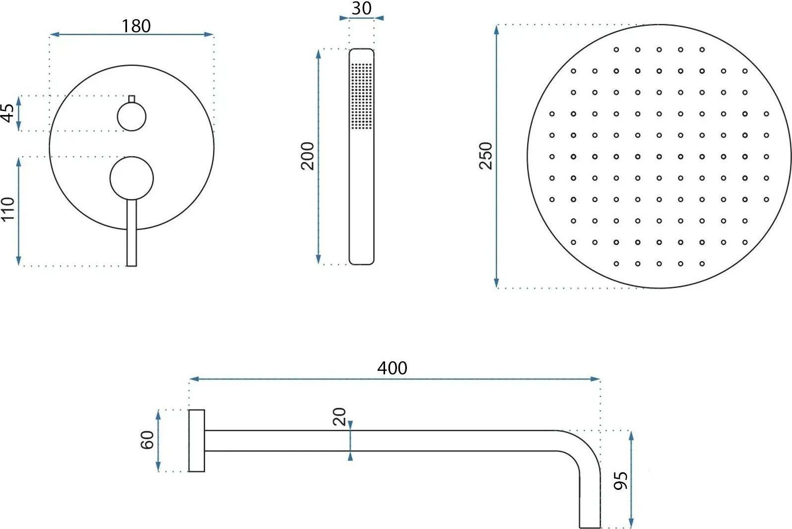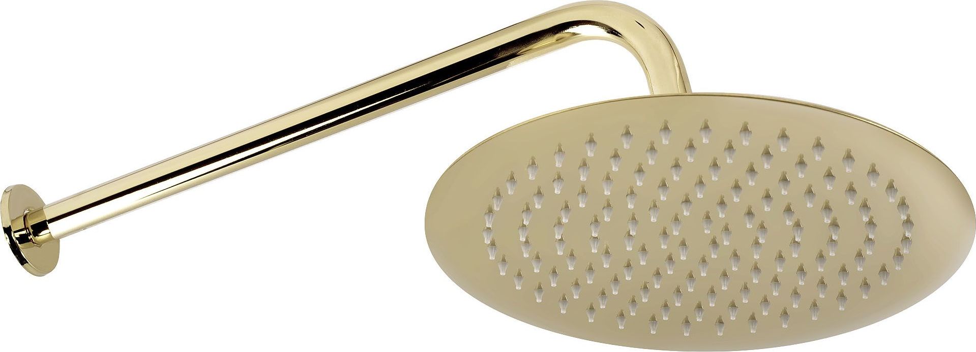 Moderní podomítková souprava ve zlatém lesklém provedení se skládá z baterie s mosaznou podomítkovou konstrukcí s krycí deskou vyrobenou z nerezové oceli, horní sprchové hlavice z plastu, vývodu s držákem ruční sprchy z mosazi, opletené 150cm hadicí na ruční sprchy z plastu.