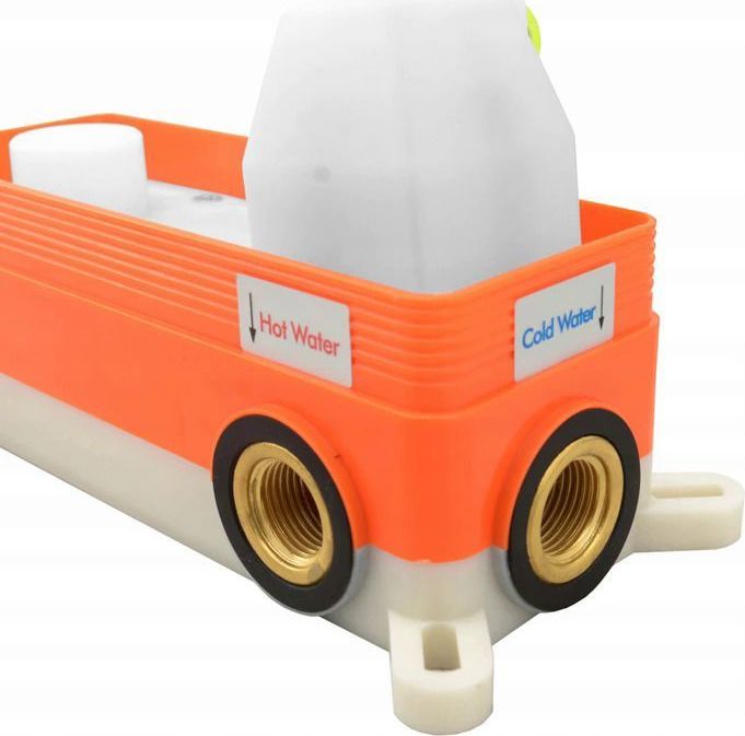 Komponenty spojíte standardním vodovodním potrubím přímo z podomítkové baterie. Máte tak plnou kontrolu nad rozmístěním jednotlivých dílů. Kovová krytka zajistí možnost jednoduché údržby uvnitř systému baterie a plastový podomítkový box zajišťuje jednoduchou a přesnou montáž.