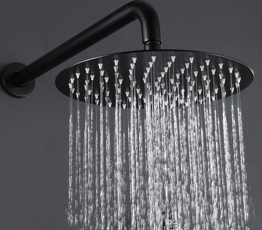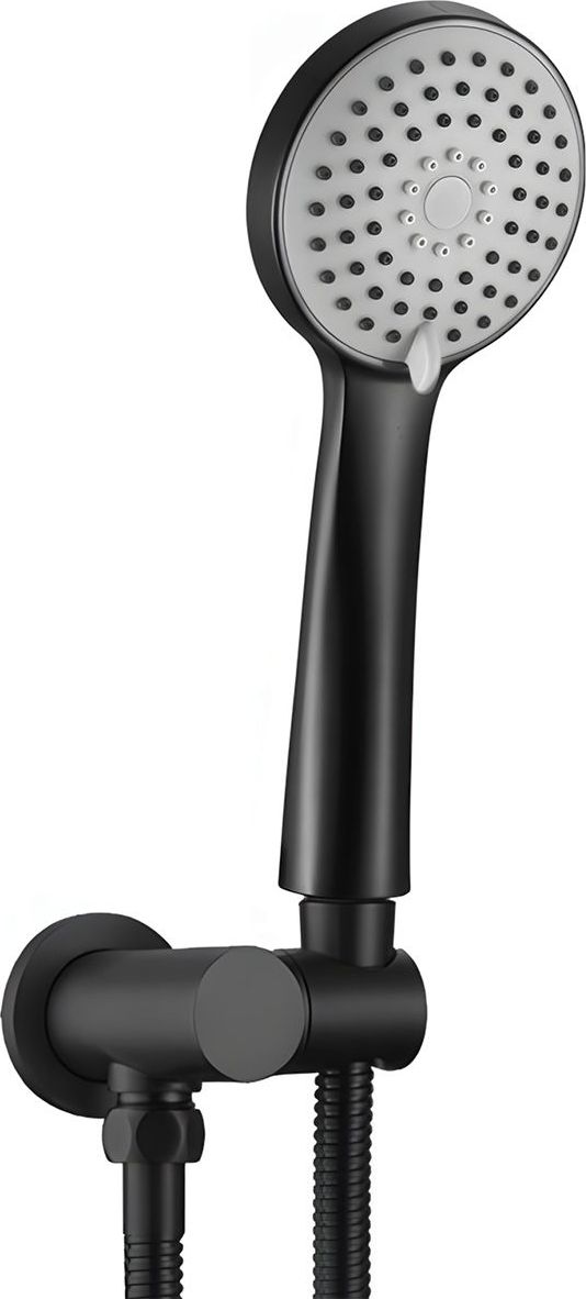 Moderní podomítková souprava v černém matném provedení se skládá z baterie s mosaznou podomítkovou konstrukcí s krycí deskou vyrobenou z nerezové oceli, horní sprchové hlavice z plastu, vývodu s držákem ruční sprchy z mosazi, opletené 150cm hadicí na ruční sprchy z plastu.