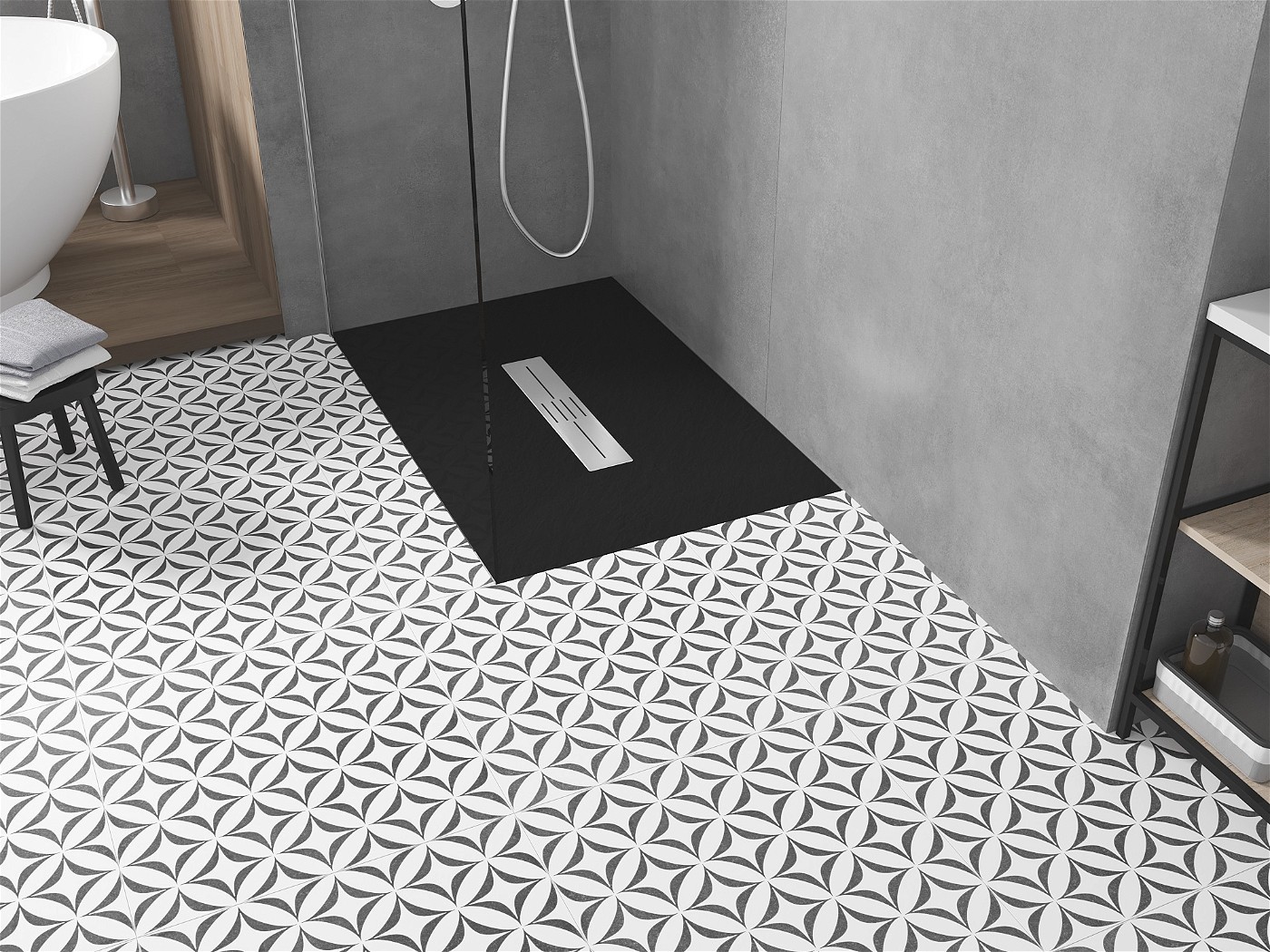 Svým povrchovým vzorem napodobuje kamennou vaničku, ale nabídne vyšší odolnost a nižší hmotnost. Vaničku lze usadit přímo na podlahu nebo do maltové lože, případně zapustit do roviny s podlahou.