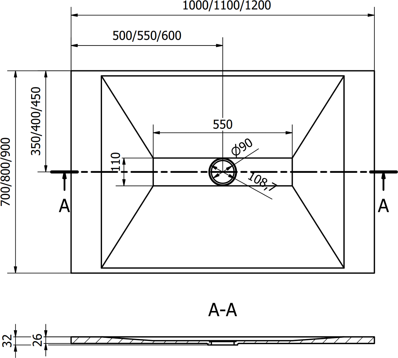 - sifon není součástí balení, krycí mřížka z nerezové oceli v provedení inox (broušený chrom) součástí balení