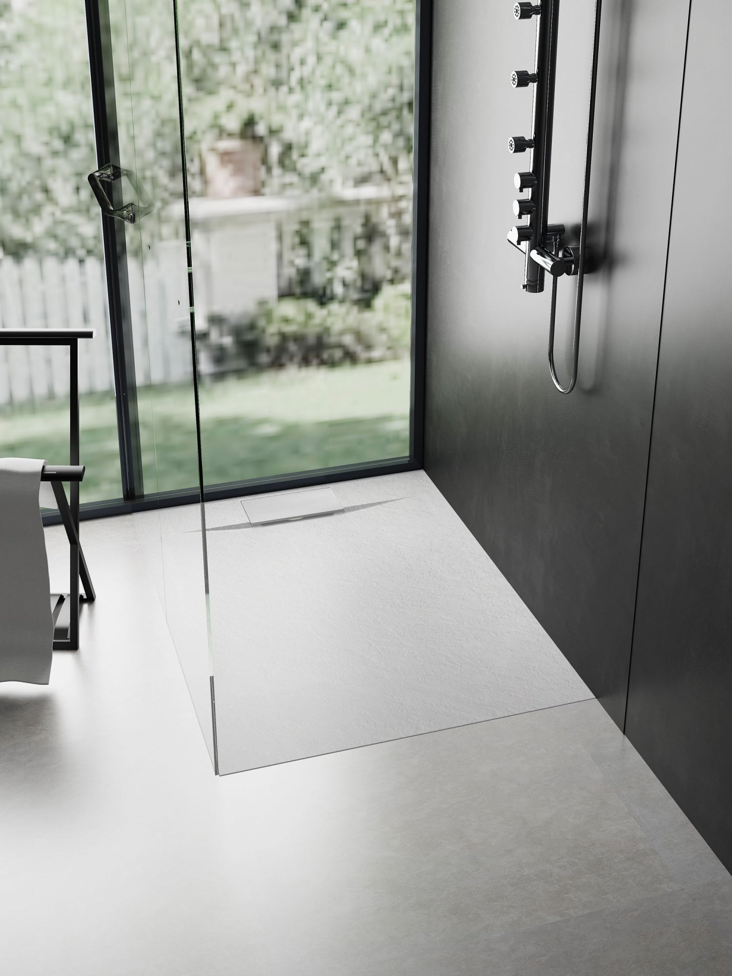 Sprchová SMC vanička REA BAZALT 80x100 cm - imitace kamene - bílá