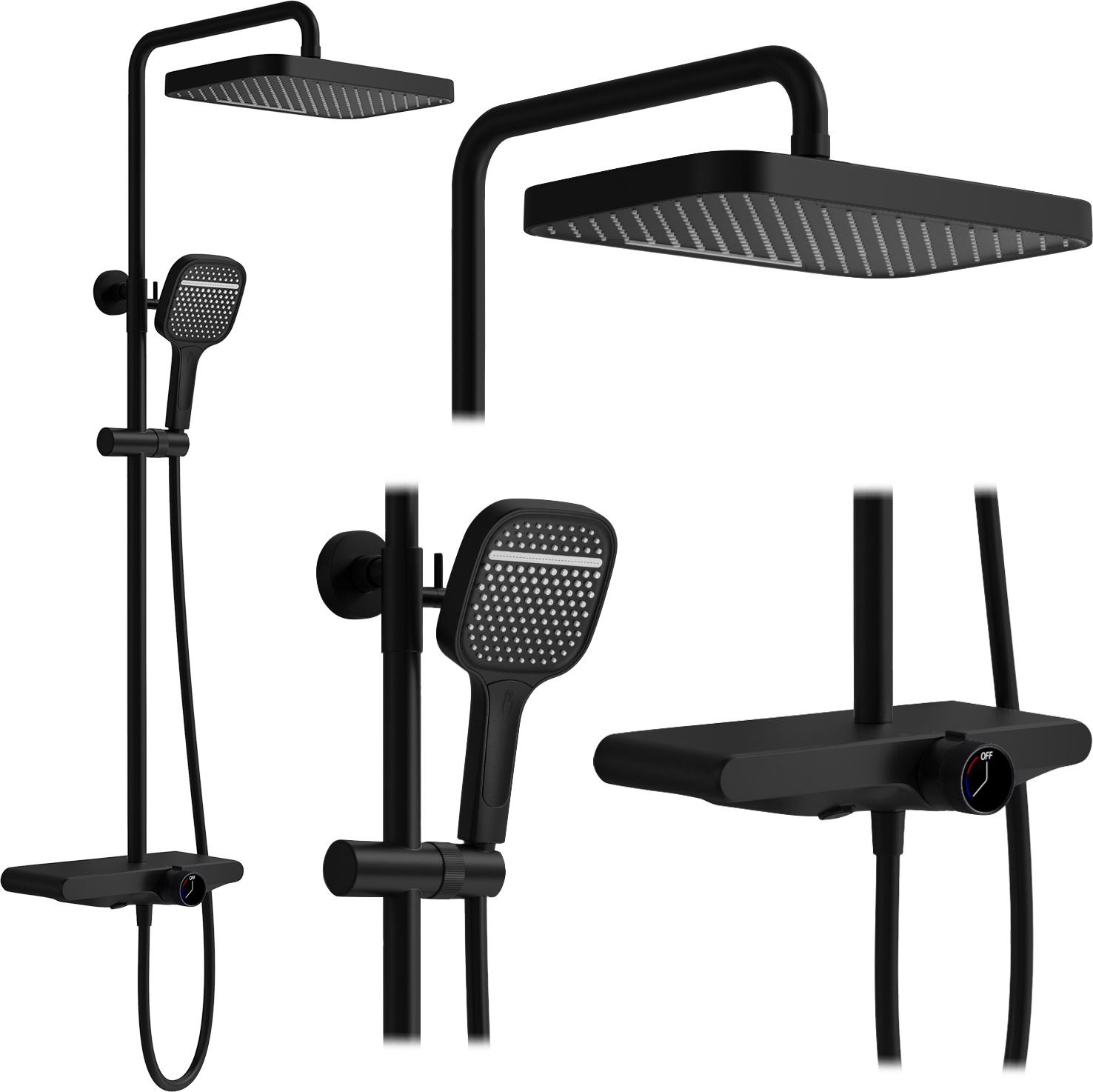 Sprchová souprava Rea BARI s termostatickou baterií a policí - černá
