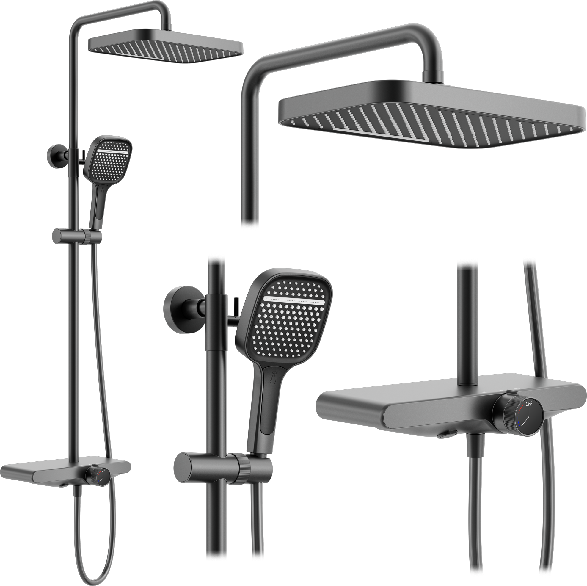 Sprchová souprava Rea BARI s termostatickou baterií a policí - titanová šedá