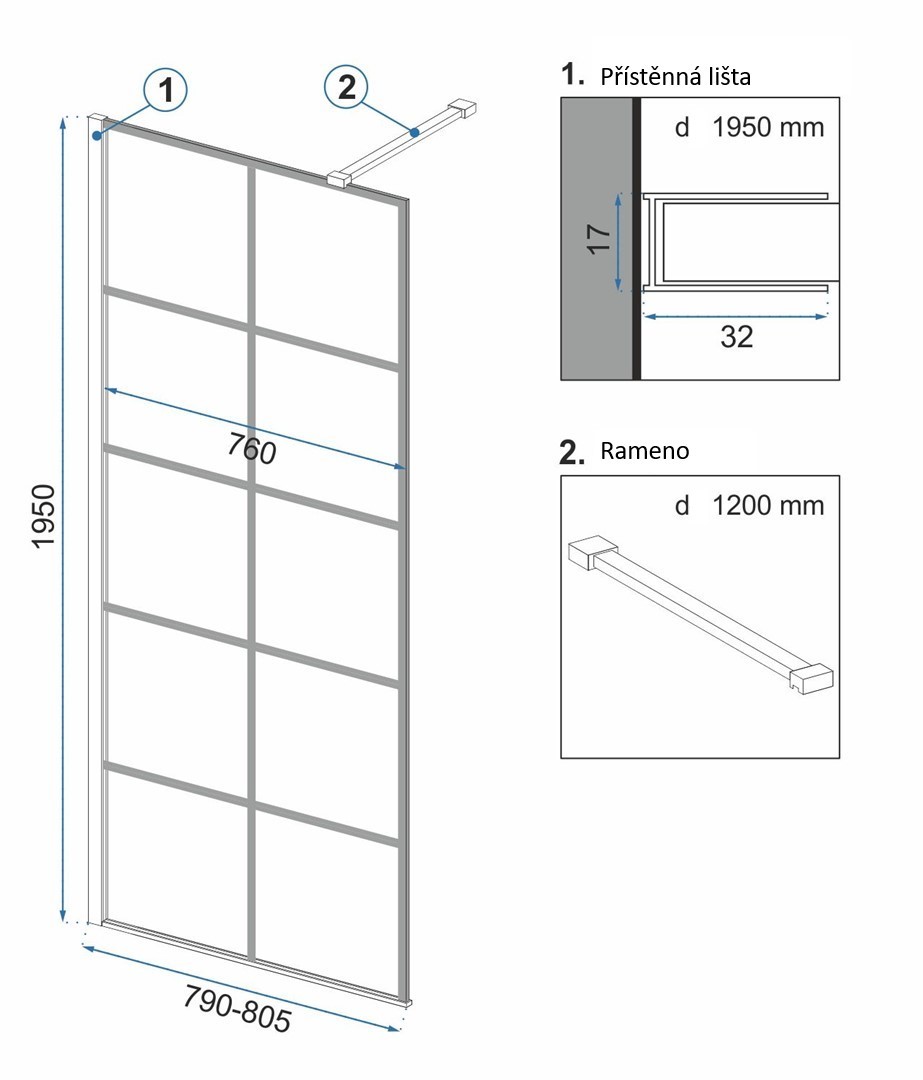 - rozměr: 80x195 cm - nastavitelné v šíři 790-810 mm