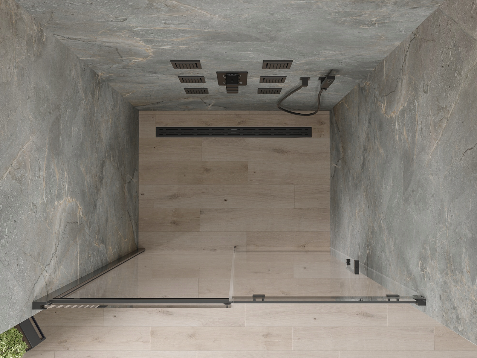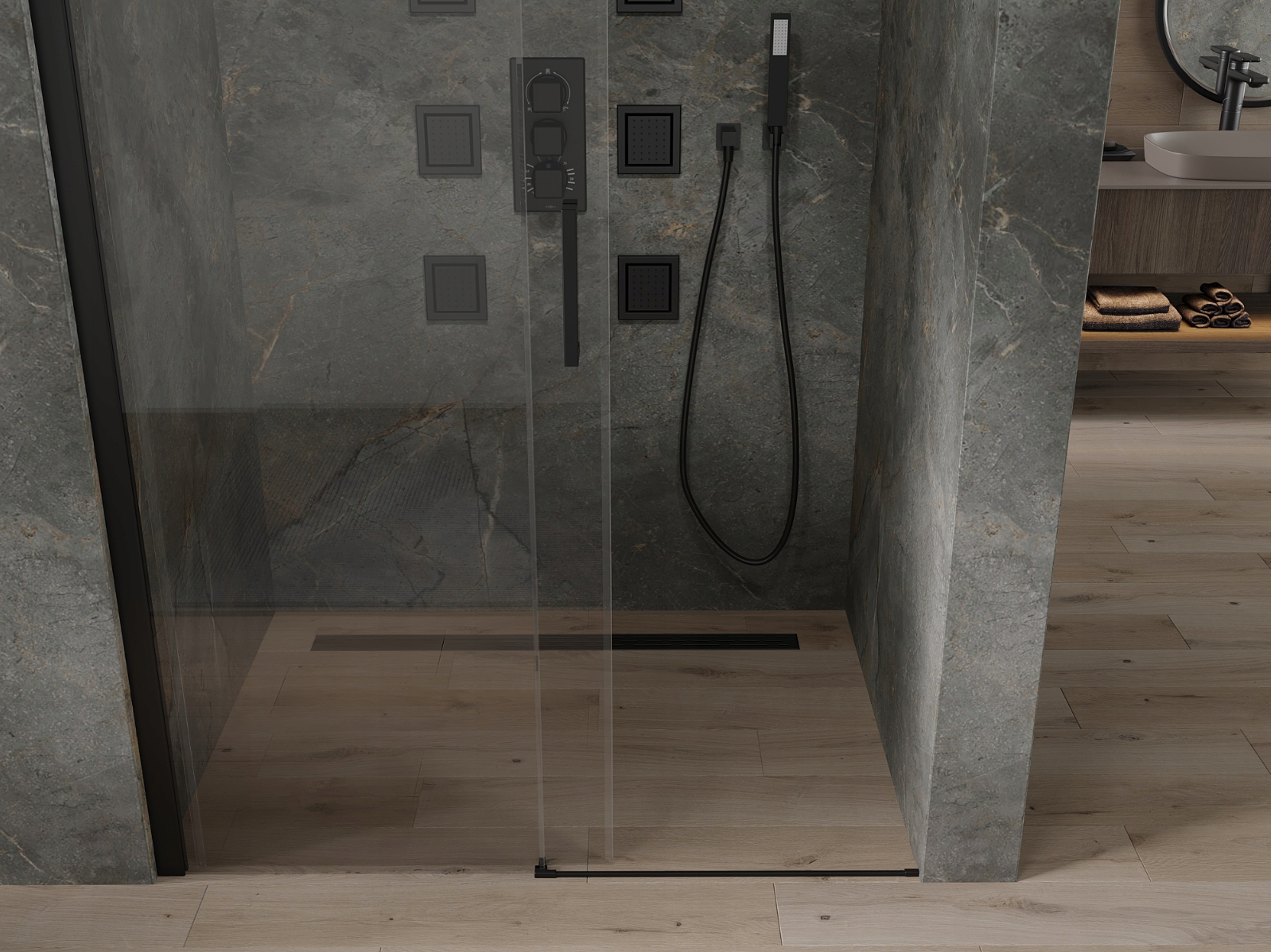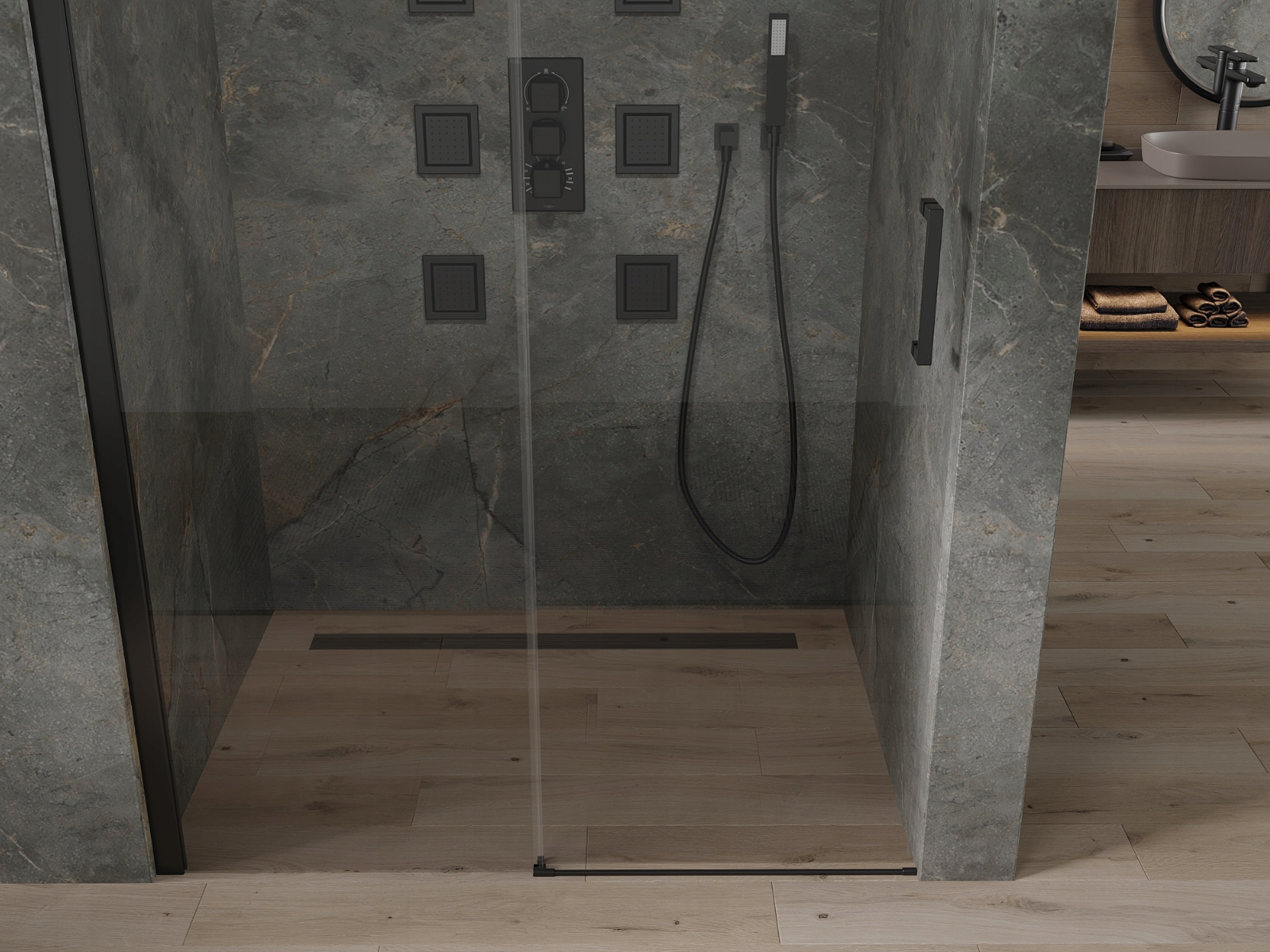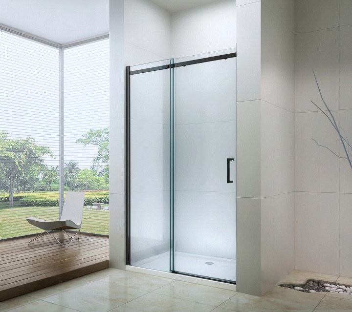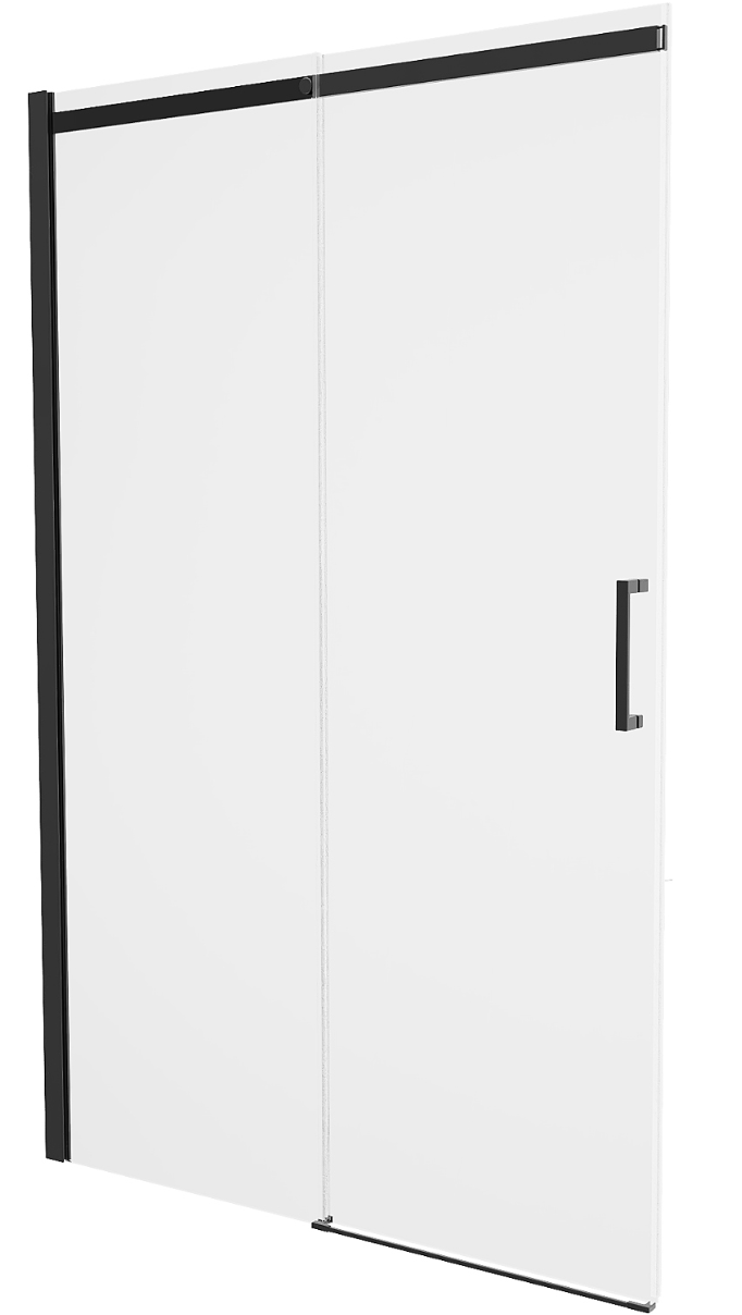 Skvělá volba do každé koupelny. Exkluzivní sprchové dveře jsou vyrobeny z 8 mm tlustého tvrzeného čirého skla. Aplikovaná povrchová úprava skla zajišťuje maximální komfort všem uživatelům. Tato technologie zaručuje jedinečné vlastnosti zabraňující znečištění skla - povrch stačí pouze opláchnout vodou. Dveře jsou uchyceny v černém hliníkovém profilu a jsou vybaveny těsněním zabraňujícím úniku vody mimo sprchový kout. Sprchové dveře jsou posuvné (pojezdy s kvalitními odolnými kolečky). K otevírání slouží elegantní kovová rukojeť.