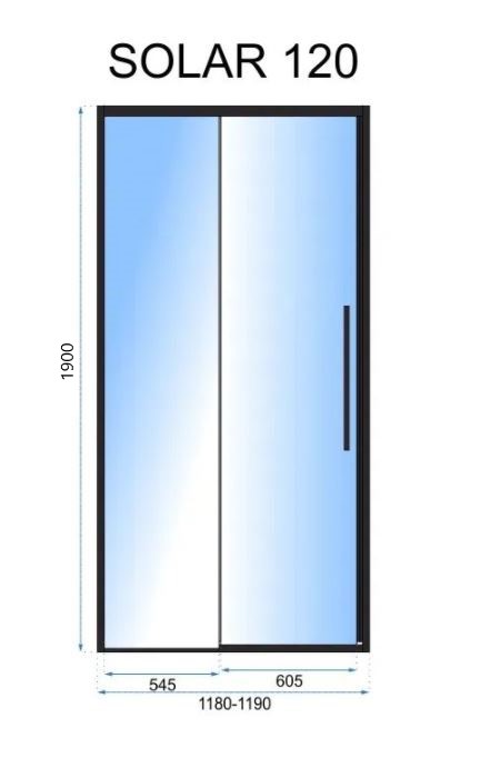 Sprchové dveře SOLAR jsou vyrobeny z 6 mm tlustého tvrzeného bezpečnostního skla. Otevírání dveří je velmi snadné díky velikému kovovému černému madlu a vrchnímu kolejnicovému systému dveří. Aplikovaná technologie Easy Clean zajišťuje jednoduchou údržbu skla.