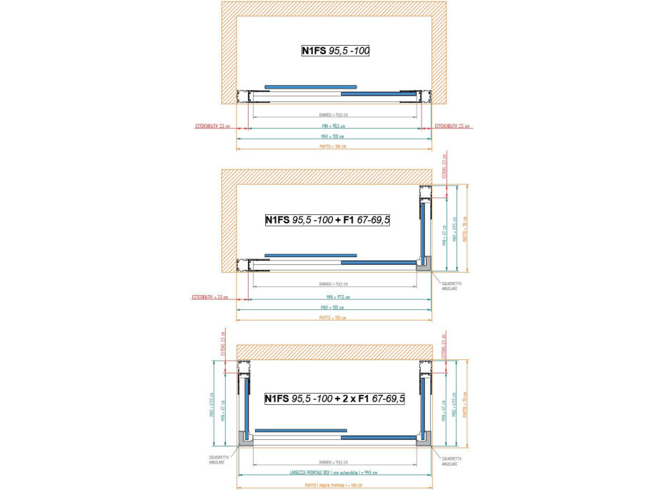 • 95,5 - 100 × 200 (v) cm, šířka vstupu 38 cm