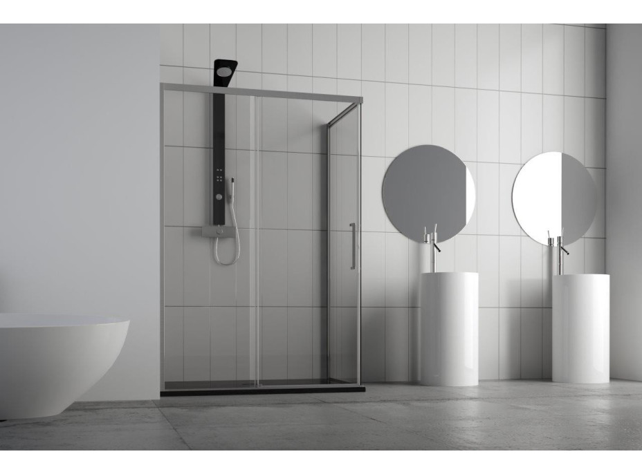 Posuvné bezbariérové skleněné stěny URBAN ESSENCE N1FS řeší atypické vstupy v prostorných koupelnách. Velmi luxusní vzhled a design je podpořen profilem z matného hliníku a výrazným pochromovaným madlem. Dodává se buď v levém SX nebo pravém DX provedení. Lze dokoupit boční pevné stěny Essence F1, pomocí kterých poskládáte praktický sprchový kout. Výška zástěn je 2 m.