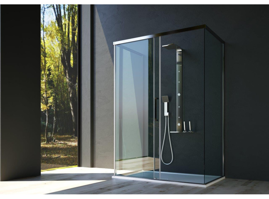 Posuvné bezbariérové skleněné stěny URBAN ESSENCE N1FS řeší atypické vstupy v prostorných koupelnách. Velmi luxusní vzhled a design je podpořen profilem z matného hliníku a výrazným pochromovaným madlem. Dodává se buď v levém SX nebo pravém DX provedení. Lze dokoupit boční pevné stěny Essence F1, pomocí kterých poskládáte praktický sprchový kout. Výška zástěn je 2 m.