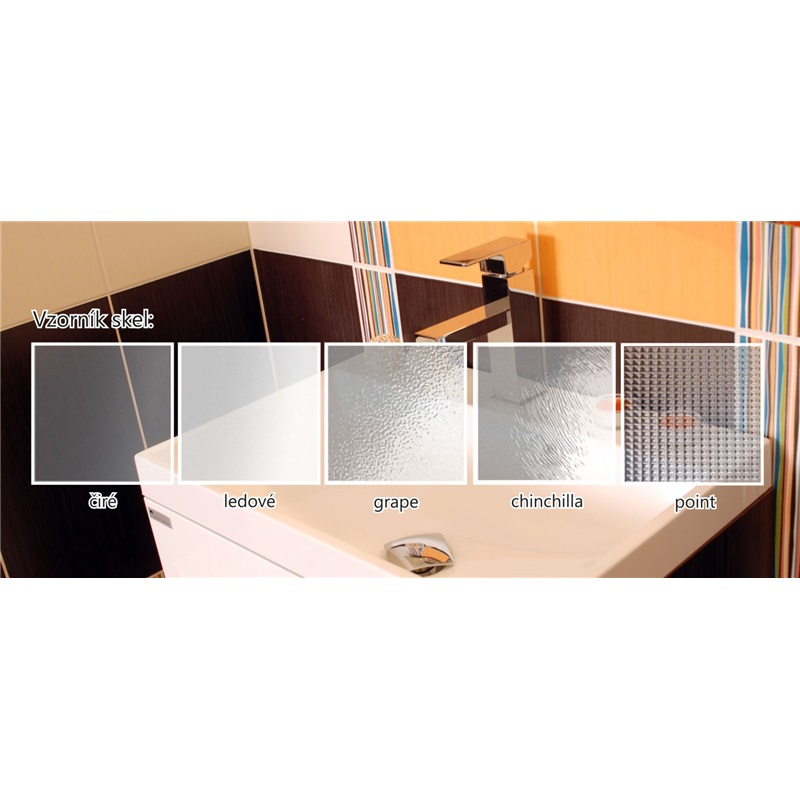 Jako výplň je použito 6 mm silné bezpečnostní sklo, v designu Čiré nebo Chinchilla. Lehké zavření a těsnost zajišťují stírací a silikonové lišty, opatřené na vstupní části magnetem, nejedná se však o hermeticky uzavřený výrobek.
