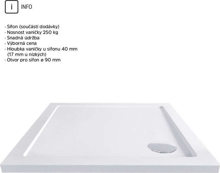 - rozměry: 90x90 cm, montážní rozměr: 88-90 x 88-90 cm, šířka vstupu: 46 cm