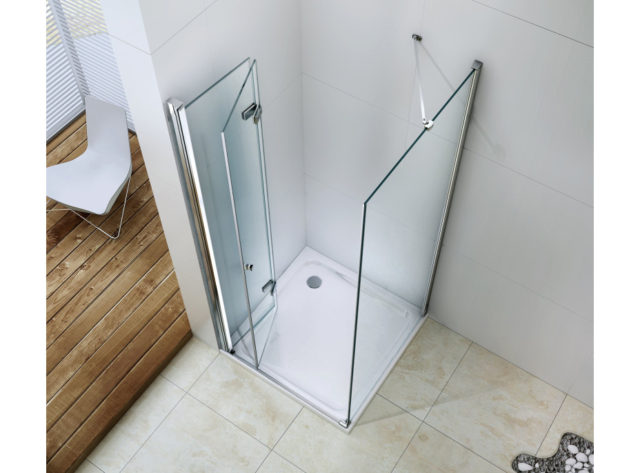 Skvělá volba do každé koupelny. Elegantní sprchový kout je vyroben z 6 mm tlustého tvrzeného skla v čirém provedení. Aplikovaná povrchová úprava skla zajišťuje maximální komfort všem uživatelům. Tato technologie zaručuje jedinečné vlastnosti zabraňující znečištění skla - povrch stačí pouze opláchnout vodou. Kout je uchycen v chromovaných hliníkových profilech a je vybaven těsněním zabraňujícím úniku vody mimo sprchový kout. Dveře sprchového koutu jsou skládací (dvě skla spojena kvalitními panty s možností složení dovnitř i ven). K otevírání slouží decentní kovová rukojeť.