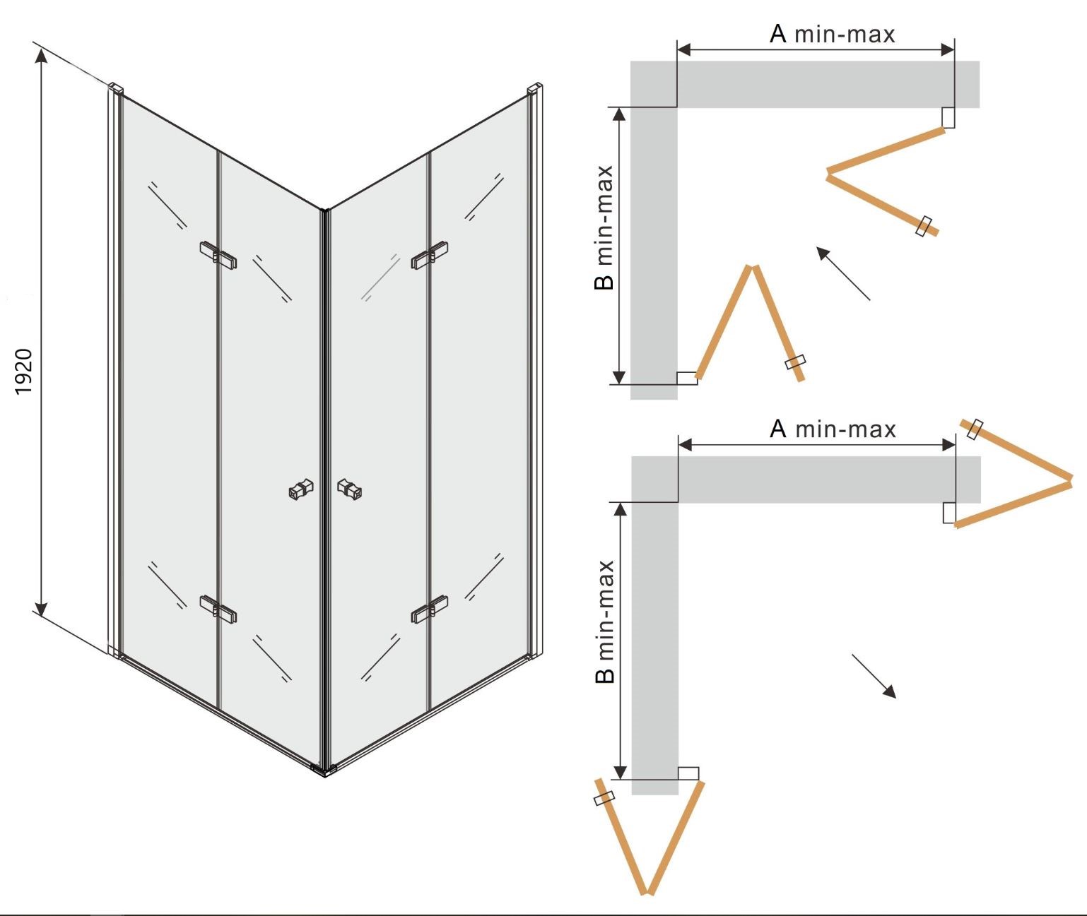 Sprchový kout je univerzální - při montáži si zvolíte pravou či levou orientaci. Profilové lišty umožňují regulaci pro vyrovnání případných nerovností stěn. Sprchový kout lze instalovat na sprchovou vaničku nebo přímo na podlahu se sprchovým žlabem. Vanička není součástí sprchového koutu. Sprchové vaničky, odtokové žlaby a další vybavení koupelen můžete dokoupit v našem eshopu.