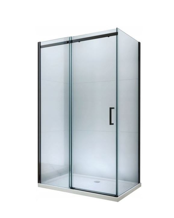 Skvělá volba do každé koupelny. Exkluzivní sprchový kout je vyroben z 8 mm tlustého tvrzeného skla v čirém provedení. Aplikovaná povrchová úprava skla zajišťuje maximální komfort všem uživatelům. Tato technologie zaručuje jedinečné vlastnosti zabraňující znečištění skla - povrch stačí pouze opláchnout vodou. Kout je uchycen v černých hliníkových profilech a je vybaven těsněním zabraňujícím úniku vody mimo sprchový kout. Dveře sprchového koutu jsou posuvné (pojezdy s kvalitními odolnými kolečky). K otevírání slouží elegantní kovová rukojeť.