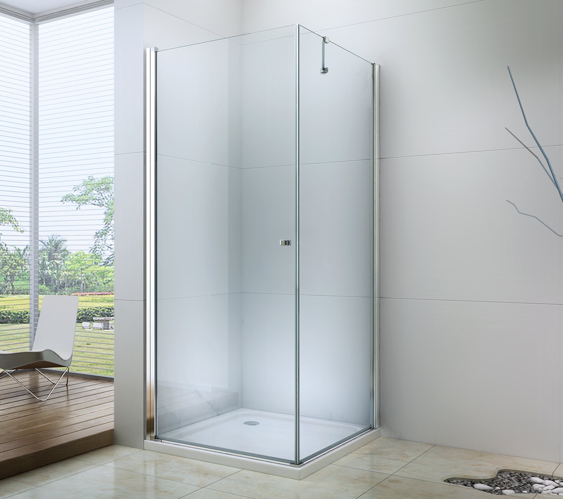 Skvělá volba do každé koupelny. Elegantní sprchový kout je vyroben z 6 mm tlustého tvrzeného skla v čirém provedení. Aplikovaná povrchová úprava skla zajišťuje maximální komfort všem uživatelům. Tato technologie zaručuje jedinečné vlastnosti zabraňující znečištění skla - povrch stačí pouze opláchnout vodou. Kout je uchycen v chromovaných hliníkových profilech a je vybaven těsněním zabraňujícím úniku vody mimo sprchový kout. Dveře sprchového koutu jsou křídlové s možností otevírání dovnitř nebo ven (nutné zvolit při montáži). K otevírání slouží decentní kovová rukojeť. Dokonalou stabilitu sprchového koutu zajišťuje ukotvující rameno, které je součástí výrobku.