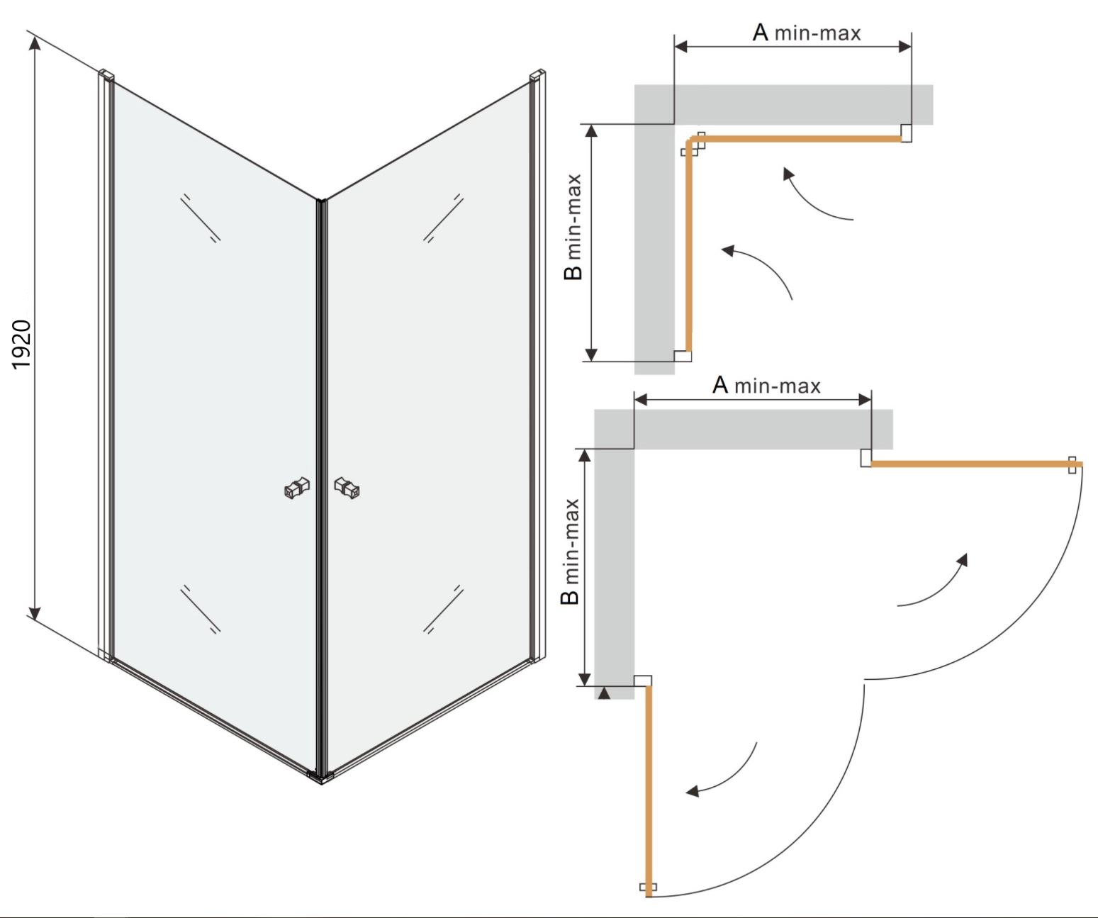 Sprchový kout PRETORA DUO se skládá ze dvou křídlových dveří s možností otevírání dovnitř i ven. K otevírání slouží decentní kovové rukojeti. Profilové lišty umožňují regulaci pro vyrovnání případných nerovností stěn. Sprchový kout lze instalovat na sprchovou vaničku nebo přímo na podlahu se sprchovým žlabem.