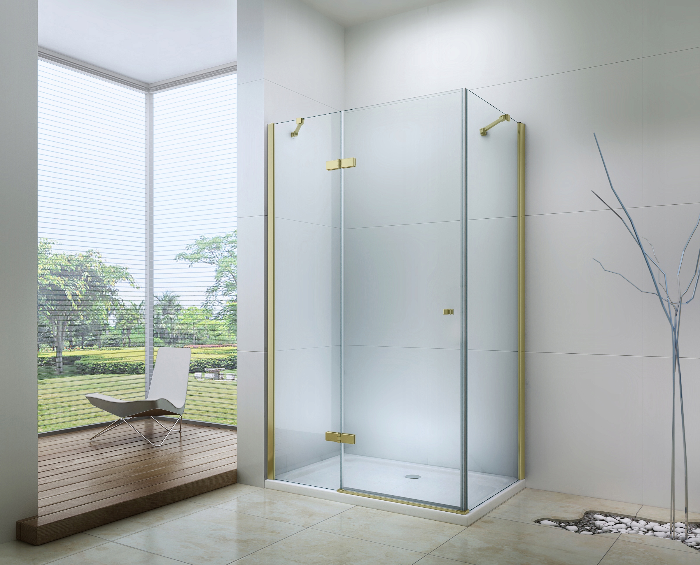 Skvělá volba do každé koupelny. Elegantní sprchový kout je vyroben z 6 mm tlustého tvrzeného skla v čirém provedení. Aplikovaná povrchová úprava skla zajišťuje maximální komfort všem uživatelům. Tato technologie zaručuje jedinečné vlastnosti zabraňující znečištění skla. Kout je uchycen v hliníkových profilech ve zlatou povrchovou úpravou a je vybaven těsněním zabraňujícím úniku vody mimo sprchový kout. Dveře sprchového koutu jsou křídlové. K otevírání slouží decentní kovová rukojeť. Dokonalou stabilitu sprchového koutu zajišťují dvě ukotvující ramena, která jsou součástí výrobku.