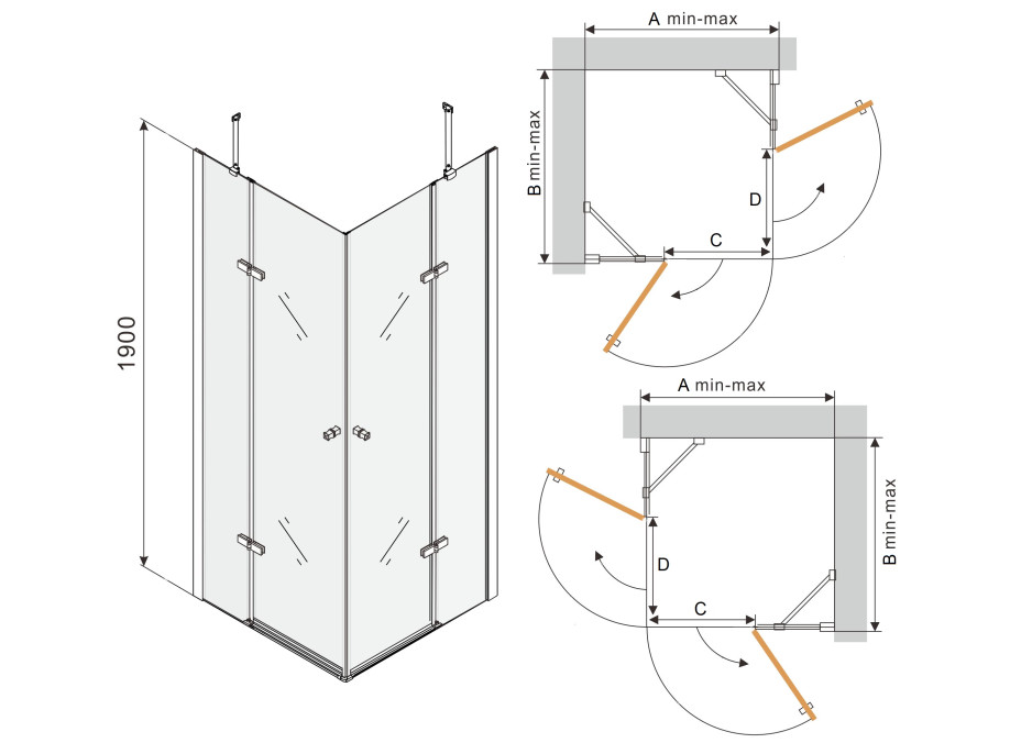 Sprchový kout je univerzální - při montáži si zvolíte levou či pravou orientaci. Profilové lišty umožňují regulaci pro vyrovnání případných nerovností stěn. Sprchový kout lze instalovat na sprchovou vaničku nebo přímo na podlahu se sprchovým žlabem. Vanička není součástí sprchového koutu. Sprchové vaničky, odtokové žlaby a další vybavení koupelen můžete dokoupit v našem eshopu.