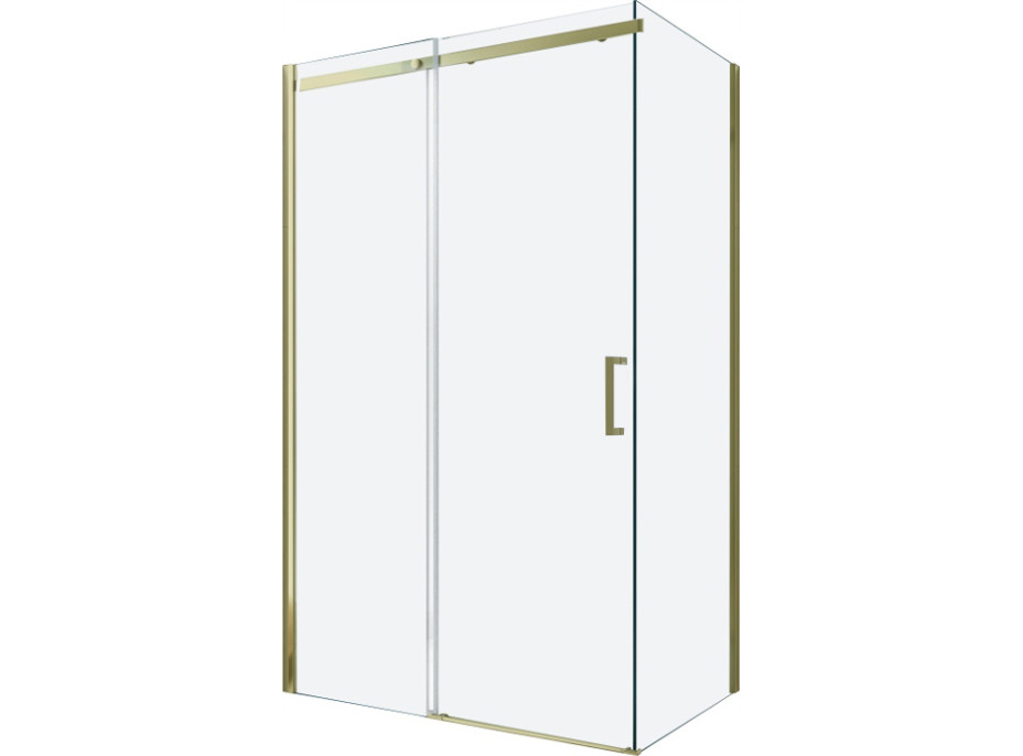 Skvělá volba do každé koupelny. Exkluzivní sprchový kout je vyroben z 8 mm tlustého tvrzeného skla v čirém provedení. Aplikovaná povrchová úprava skla zajišťuje maximální komfort všem uživatelům. Tato technologie zaručuje jedinečné vlastnosti zabraňující znečištění skla - povrch stačí pouze opláchnout vodou. Kout je uchycen v hliníkových profilech se zlatou povrchovou úpravou a je vybaven těsněním zabraňujícím úniku vody mimo sprchový kout. Dveře sprchového koutu jsou posuvné (pojezdy s kvalitními odolnými kolečky). K otevírání slouží elegantní kovová rukojeť.