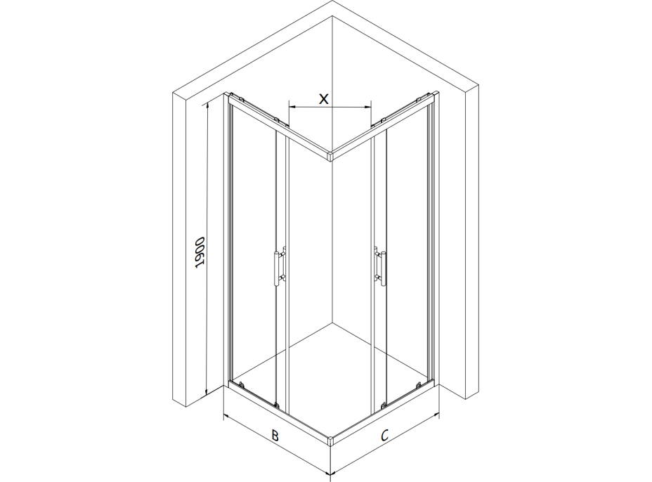 Rozměr koutu: 80x80 cm - nastavitelný rozsah rozměru každé strany s dveřmi: 79 - 80 cm