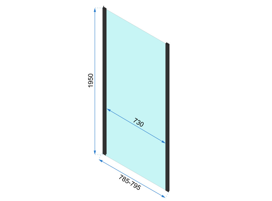 - rozměr: 110x80 cm - nastavitelné v šíři 1090-1110 (dveře) 785 x 795 mm (pevná stěna)