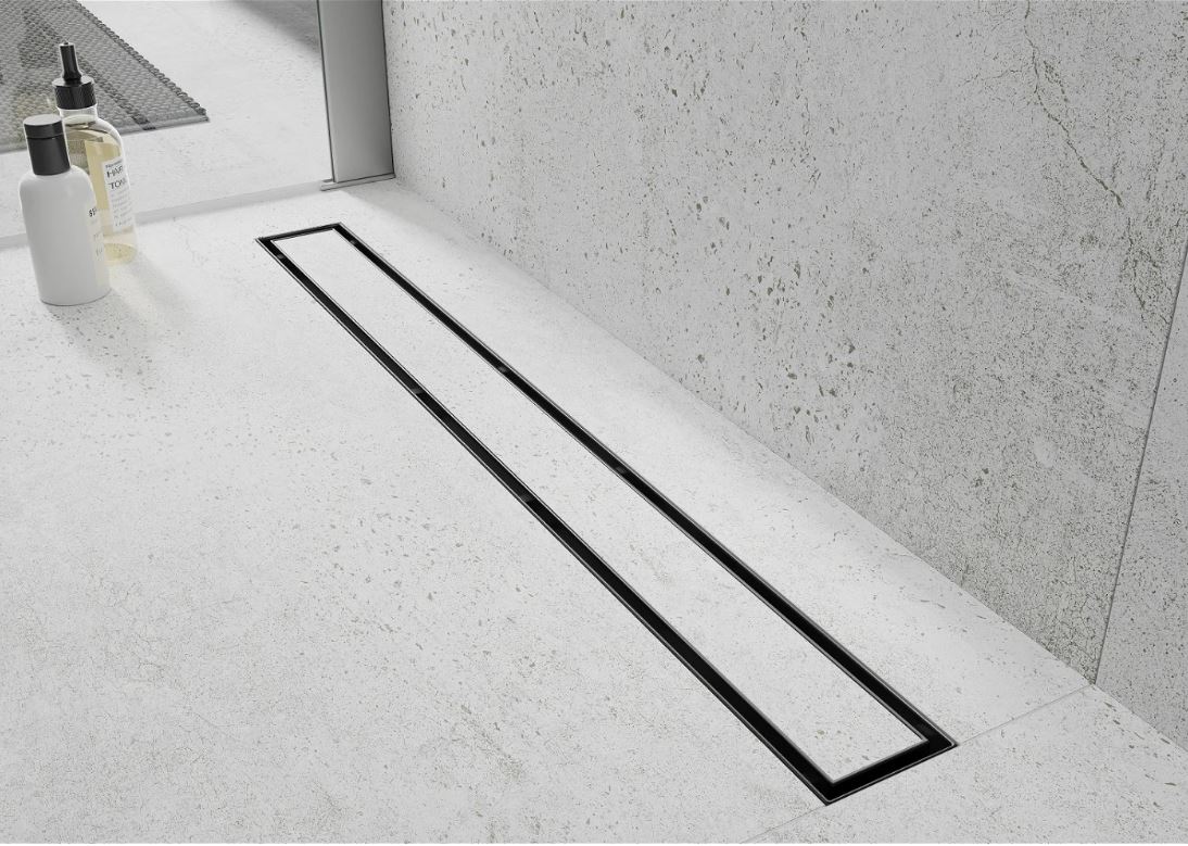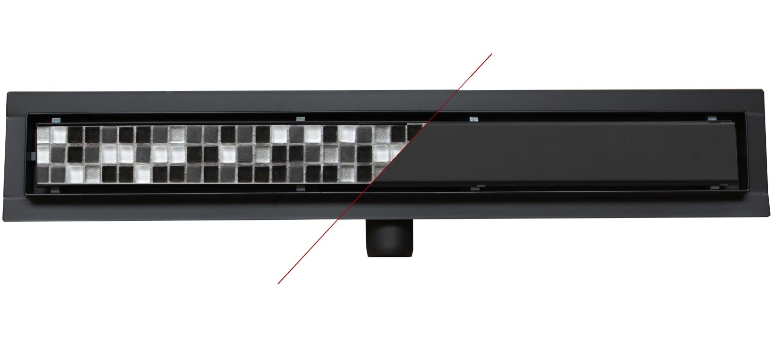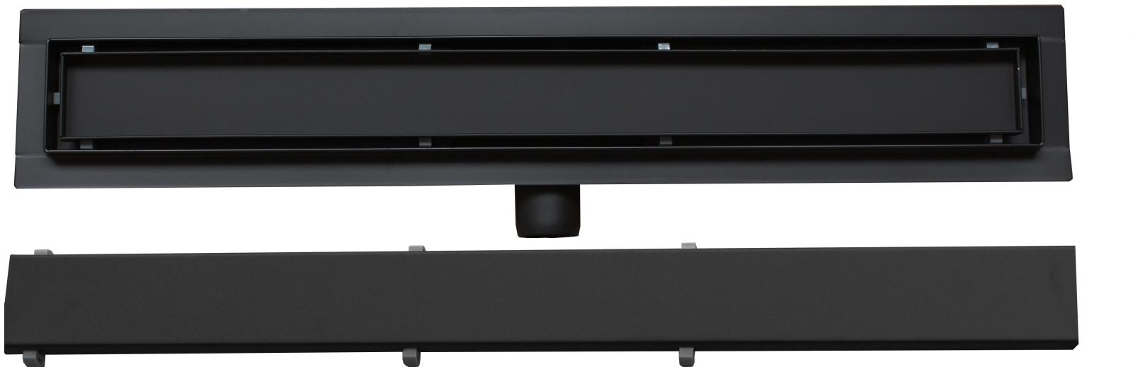 Odtokový sprchový žlab FLAT 2v1 - černý - hladký vrchní kryt přetočením nabídne možnost vložení dlažby