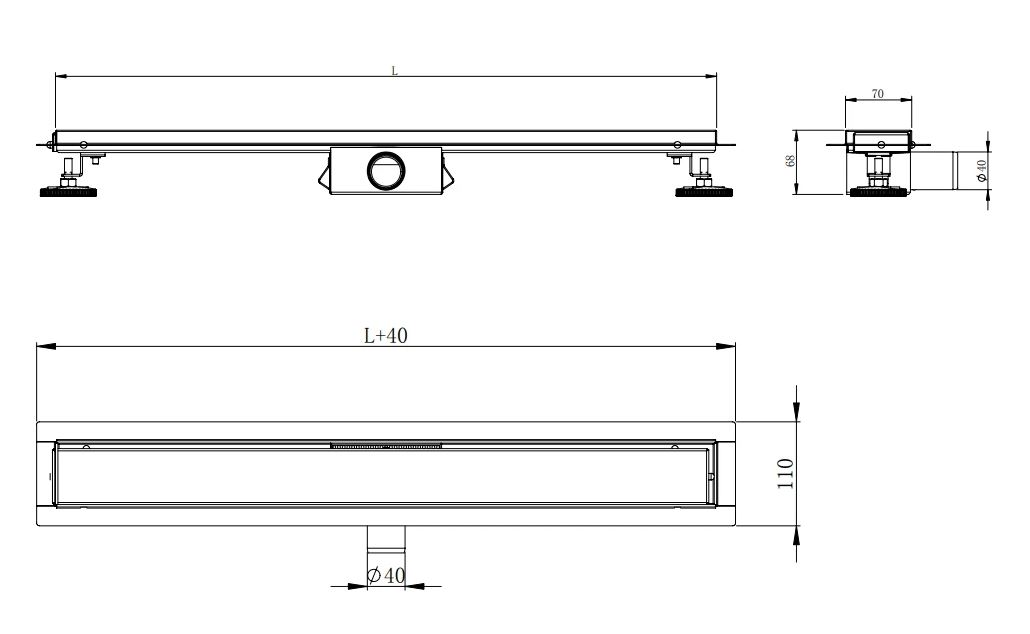 Odtokové potrubí o průměru 40/50 mm s propustností sifonu 0,6 l/s. Sifon je vybaven odnímatelným filtrem na lapání nečistot a protizápachovou přepážkou. Montážní hloubka je pouhých 52 mm, což umožní snadné zabudování i do nižších podlah (například při rekonstrukci staršího bytového jádra). Díky použití odtokového sprchového žlabu docílíte rychlého a snadného čištění podlahy Vaší koupelny.