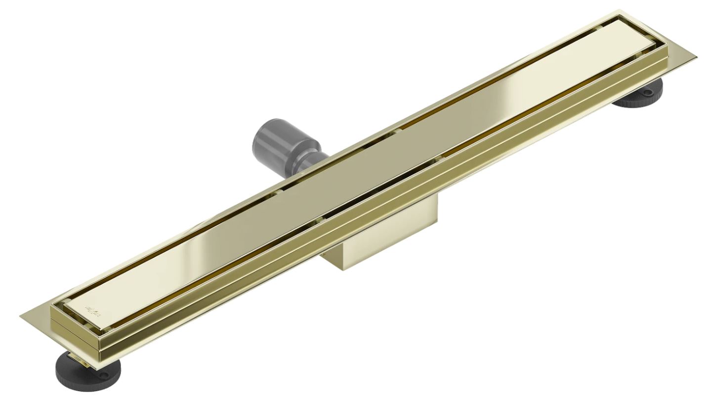 Odtokový sprchový žlab je vyroben z nerezové oceli jakosti AISI 304 o tloušťce 1,2 mm a nabízí dvě možnosti jeho zabudování: do žlabu snadno zabudujete dlažbu, nebo můžete vrchní mřížku otočit a získat tak dekorační rošt ve zlaté barvě. Velmi kvalitní materiál zaručuje pevnost mřížky i při velkém zatížení. Výhodou našich odtokových žlabů je, že je lze namontovat do prostoru stejně jako ke zdi sprchového koutu.