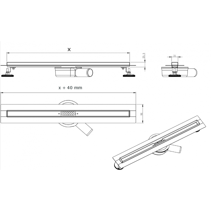 Hlavní předností tohoto typu žlabu je především jeho velmi úzké provedení, které nijak nenaruší vzhled žádné koupelny. Otočný vývod vody o 360 stupňů umožňuje snazší instalaci dle vaší potřeby. Kvalitní materiál zaručuje pevnost konstrukce i při velkém zatížení. Výhodou našich odtokových žlabů je, že je lze namontovat do prostoru stejně jako ke zdi sprchového koutu. Odtokové potrubí o průměru 40/50 mm s propustností sifonu 0,6 l/s. Sifon je vybaven odnímatelným filtrem na lapání hrubých nečistot a protizápachovou přepážkou. Díky použití odtokového sprchového žlabu docílíte rychlého a hlavně elegantního způsobu odvodu vody z prostoru sprchového koutu.