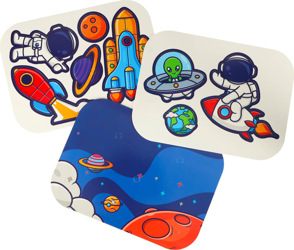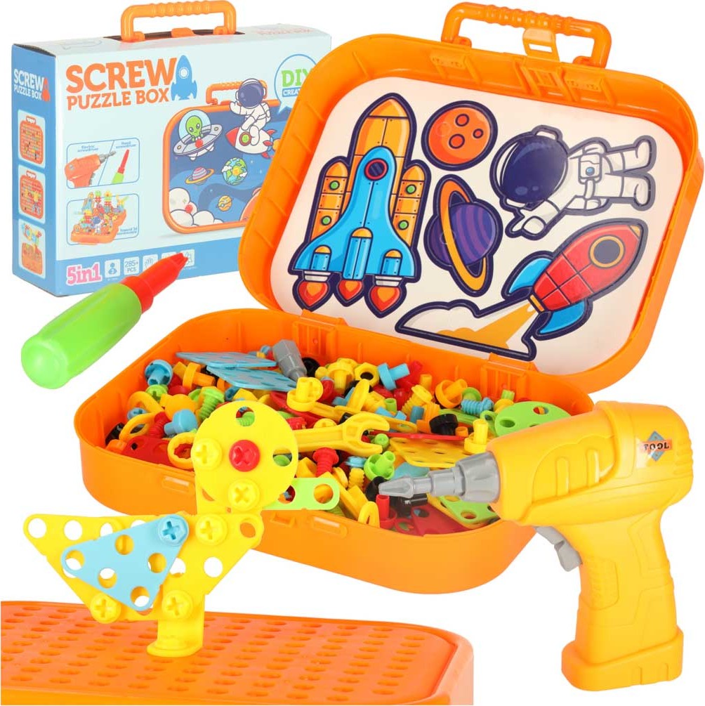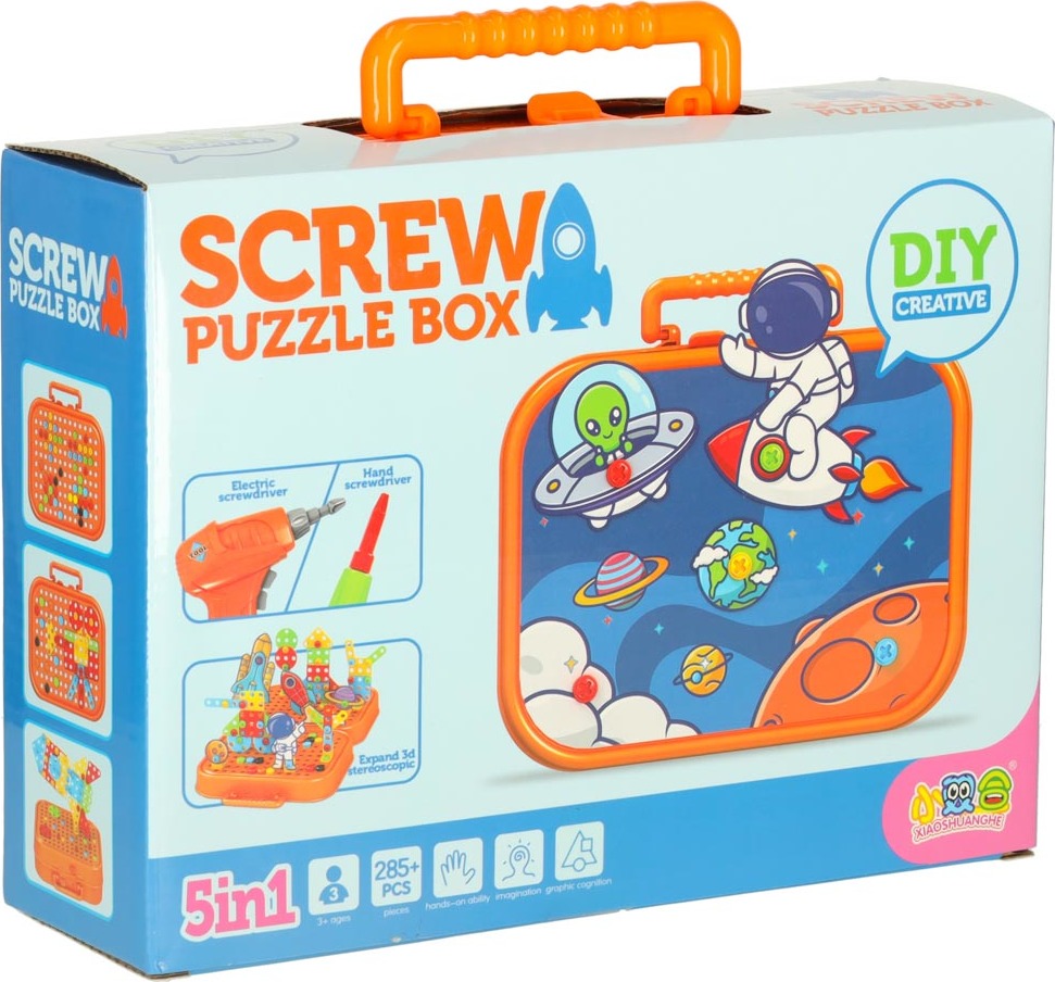 Barevné stavebnice jsou perfektní volbou pro každé dítě – poskytnou hodiny zábavy a zároveň rozvíjejí klíčové dovednosti. Celá sada je dodávána v praktickém plastovém pouzdře, které slouží dvěma účelům: slouží jako pohodlné místo pro uložení kostek a jako kreativní „plátno“ pro mladého stavitele. Otvory v pouzdře umožňují vkládání barevných kostek a šroubů pomocí šroubováku nebo vrtačky (baterie není součástí balení). Další kartonové figurky s vesmírným motivem umožňují vytvářet 3D výtvory. Kostky jsou skvělým způsobem, jak rozvíjet manuální dovednosti a kreativitu dítěte.