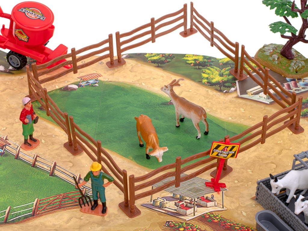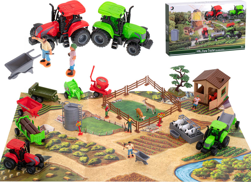 Jedinečná sada vytvořená pro všechny malé fanoušky traktorů a hospodářských zvířat. Nyní bude mít vaše dítě možnost vytvořit si vlastní farmu a cítit se jako skutečný majitel farmy. Velká papírová deska představuje terén vašeho pozemku. Můžete na něm postavit velkou stáj - bezpečné útočiště, kde si koně odpočinou po náročném dni. Postavte také ohradu pro zvířata, aby vám neutekla. Po velké farmě se pěšky těžko pohybuje, proto jsou součástí balení 2 traktory s vyměnitelnými přívěsy, které usnadňují práci. Nad vaší farmou svítá nový den - je tedy čas pustit se do práce.