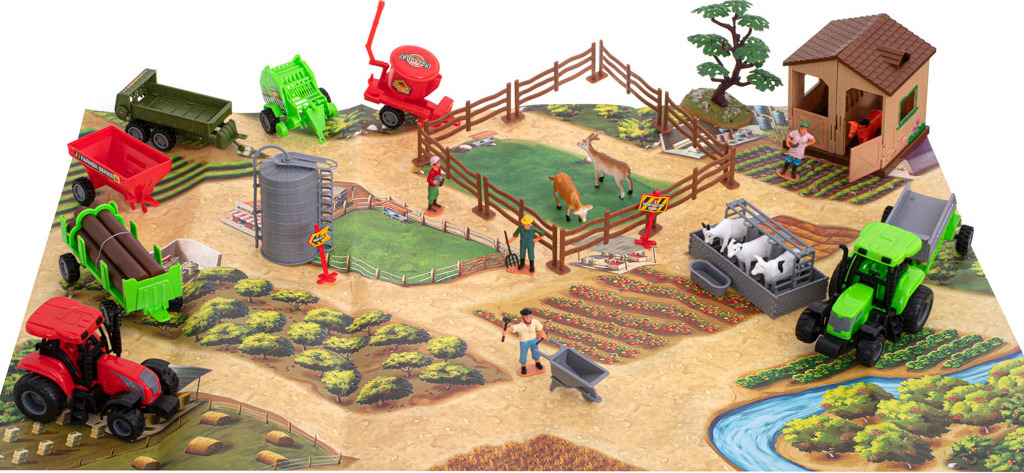 Díky této hračce vaše dítě lépe pochopí realitu života na venkově. Sada rozvíjí představivost a kreativní myšlení. Konstrukce desky umožňuje postavit hospodářské budovy podle představ malého stavitele. Všechny prvky byly přizpůsobeny malým rukám, takže dítě si snadno "přestaví" svůj dvorek. I když batole zvládne hračku samo, sada podporuje společné trávení času - jak s vrstevníky, tak s rodiči nebo chůvou. Na farmě se přece budou hodit všechny ruce! Celá sada zaujme estetickým designem. Všechny prvky byly vytvořeny tak, aby se co nejvíce podobaly originálům. Traktory mají reprodukované komíny, vybavení kabiny řidiče i vnější prvky, jako je karoserie a charakteristická terénní kola. Zvířata byla pečlivě vyrobena tak, aby se podobala těm skutečným. Celá sada vypadá velmi esteticky a nepochybně bude ozdobou každého dětského pokoje. Navíc vám poskytne hodiny zábavy!