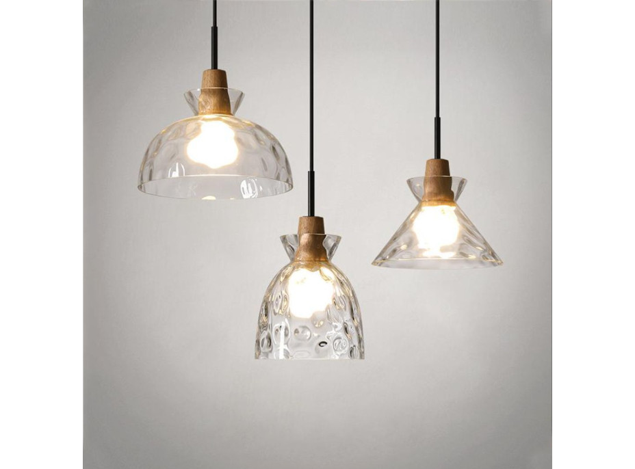 Stropní svítidlo CROOKED typ A - kov/sklo/dřevo - černé