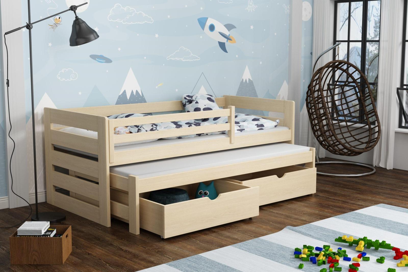 Šuplíky k posteli z masivu borovice JOLANA s přistýlkou a šuplíky - 190x90 cm - PŘÍRODNÍ BOROVICE