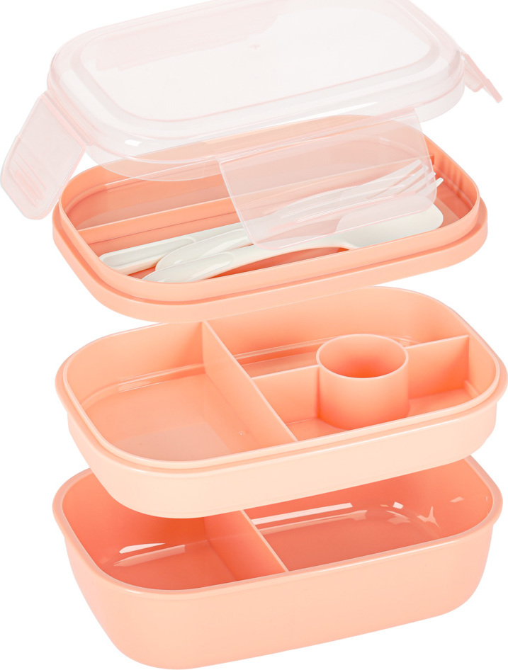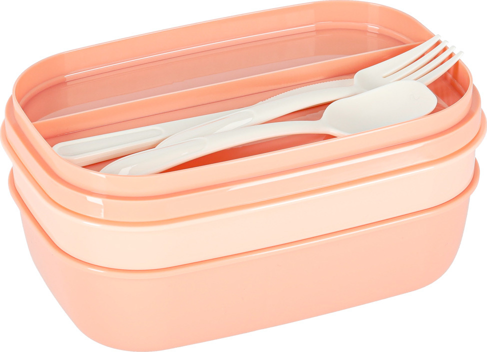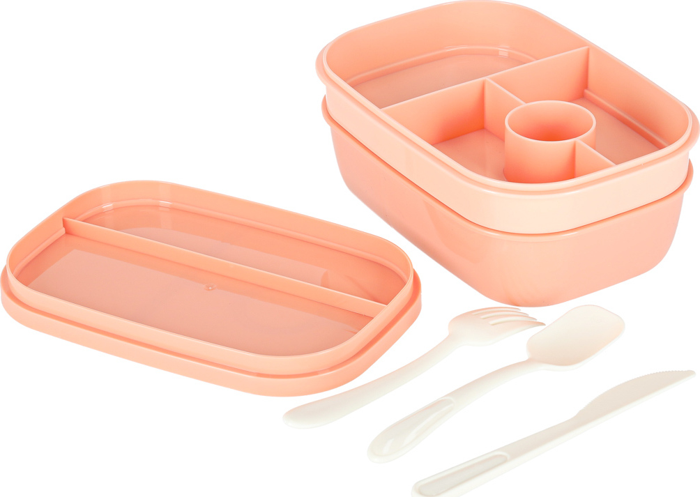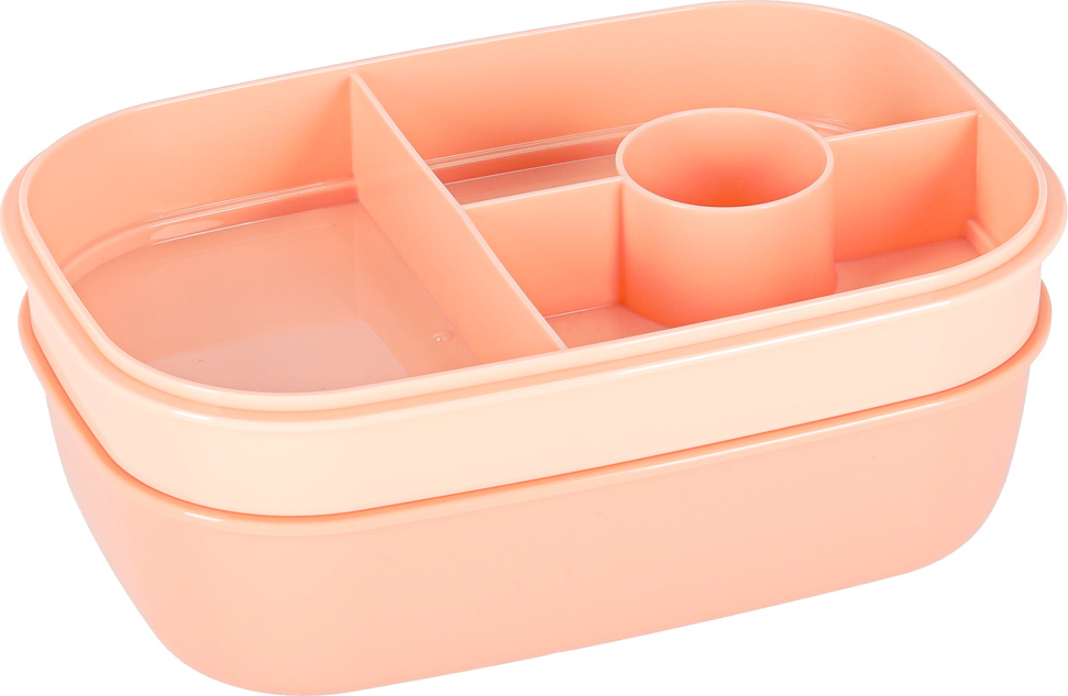Praktický svačinový box, který si můžete vzít do práce nebo do školy. Má objem 1900 ml a spoustu přihrádek na různé potraviny. Součástí je přihrádka na omáčku a příbory, takže si s sebou můžete vzít výživný oběd. Tato ergonomická nádoba na potraviny vám pomůže při plánování jídelníčku pro děti i dospělé. Tento praktický svačinový box obsahuje mimo jiné mini nádobu na müsli, jogurt nebo omáčku a také speciální přihrádku na příbory. Nádoba umožňuje pohodlné ohřev v mikrovlnné troubě a po jídle ji lze snadno mýt v myčce nádobí.