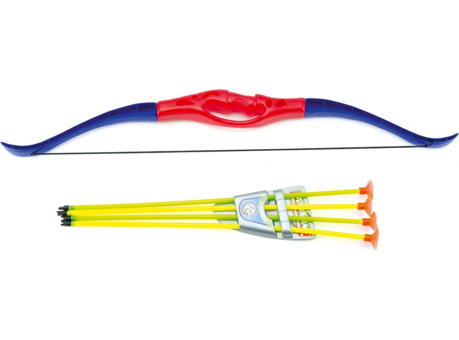 Plastový set s lukem a šípy určený pro malé lukostřelce, kteří střílí se šípy zakončenými přísavkou na připravený cíl. Bezpečné šípy s přísavkou. Trénink přesnosti a soustředění. Vyrobeno z kvalitního plastu. Délka tětivy 57 cm. 4 šípy o délce 34 cm.Vlastnosti