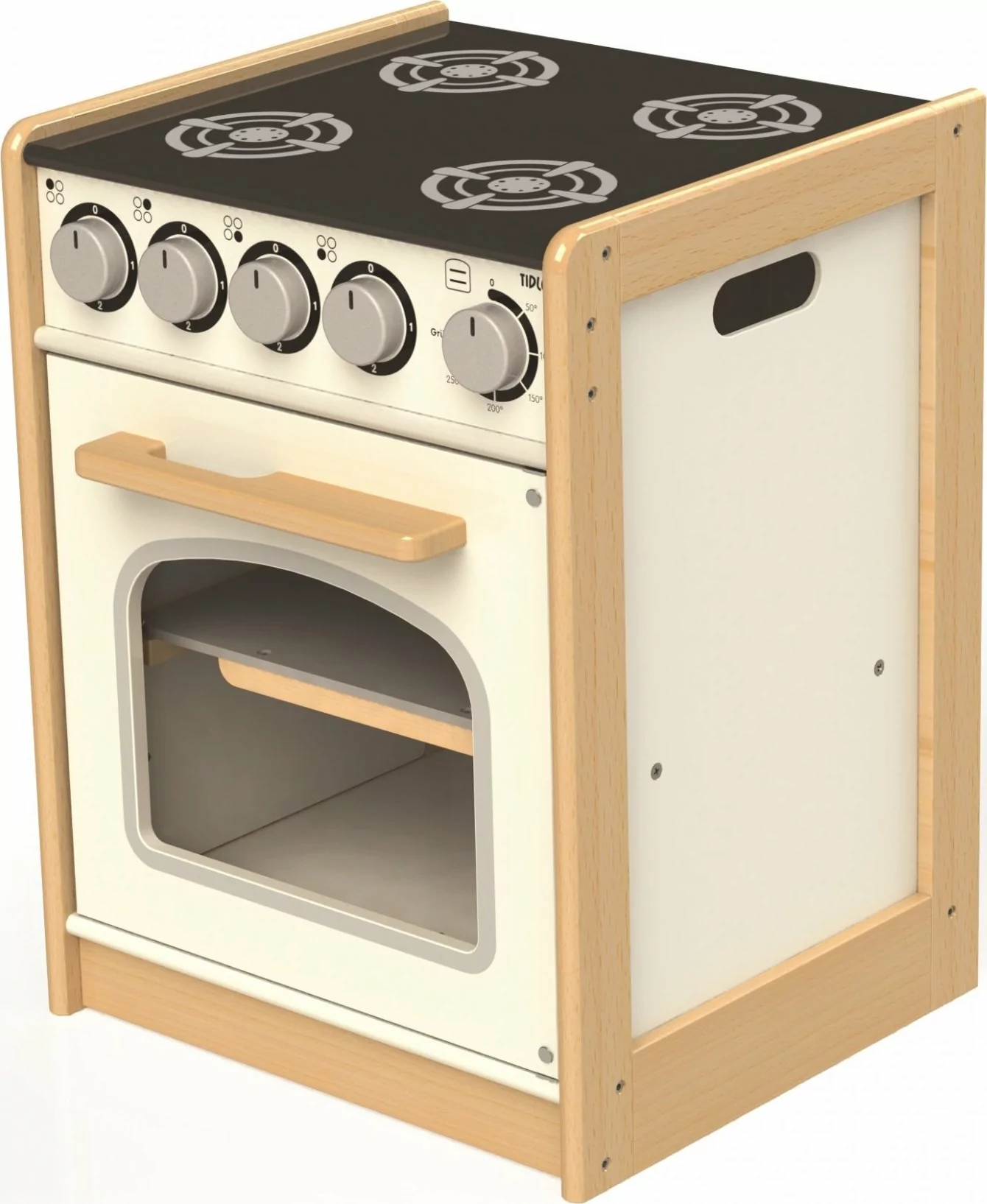 Mladí nastávající kuchaři si užijí vaření a pečení s tímto dřevěným sporákem ve venkovském stylu! Obsahuje otočné, klikající ciferníky, varné desky, troubu s vynímatelným „plechem“. Lehce otevíratelné dveře také obsahují průzor, aby mladí kuchaři mohli jídlo kontrolovat a nespálili jej! Skvělý způsob jak děti naučit vařit různá jídla a dodržovat bezpečnost v kuchyni. Na boku má rukojeti k lehčímu uchopení. Podporuje kreativní a představivou hru. Kombinujte s ostatními Tidlo kuchyňskými spotřebičemi a vytvořte hravou kuchyň! Po vybalení je nutno složit. Vyrobeno z kvalitních materiálů z odpovědných zdrojů. Odpovídá evropské bezpečnostní normě.