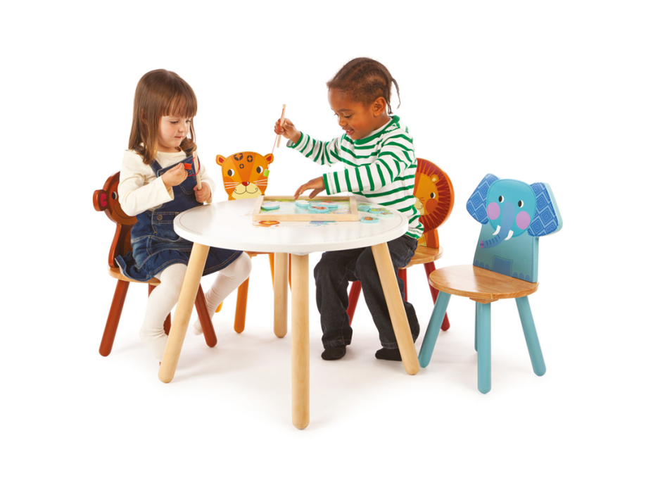 S krásnými ilustracemi lva, slona, leoparda a opice bude tento zvířecí stůl hitem u všech milovníků safari. Má ideální výšku pro děti, může se použít ke hraní i k jídlu a bude se vyjímat v každém dětském pokoji, herně či kuchyni. Používejte pouze doma. Set 4 židlí stejného designu lze dokoupit zvlášť z naší nabídky. Po vybalení je nutno složit. Vyrobeno z kvalitních materiálů z odpovědných zdrojů. Odpovídá evropské bezpečnostní normě.